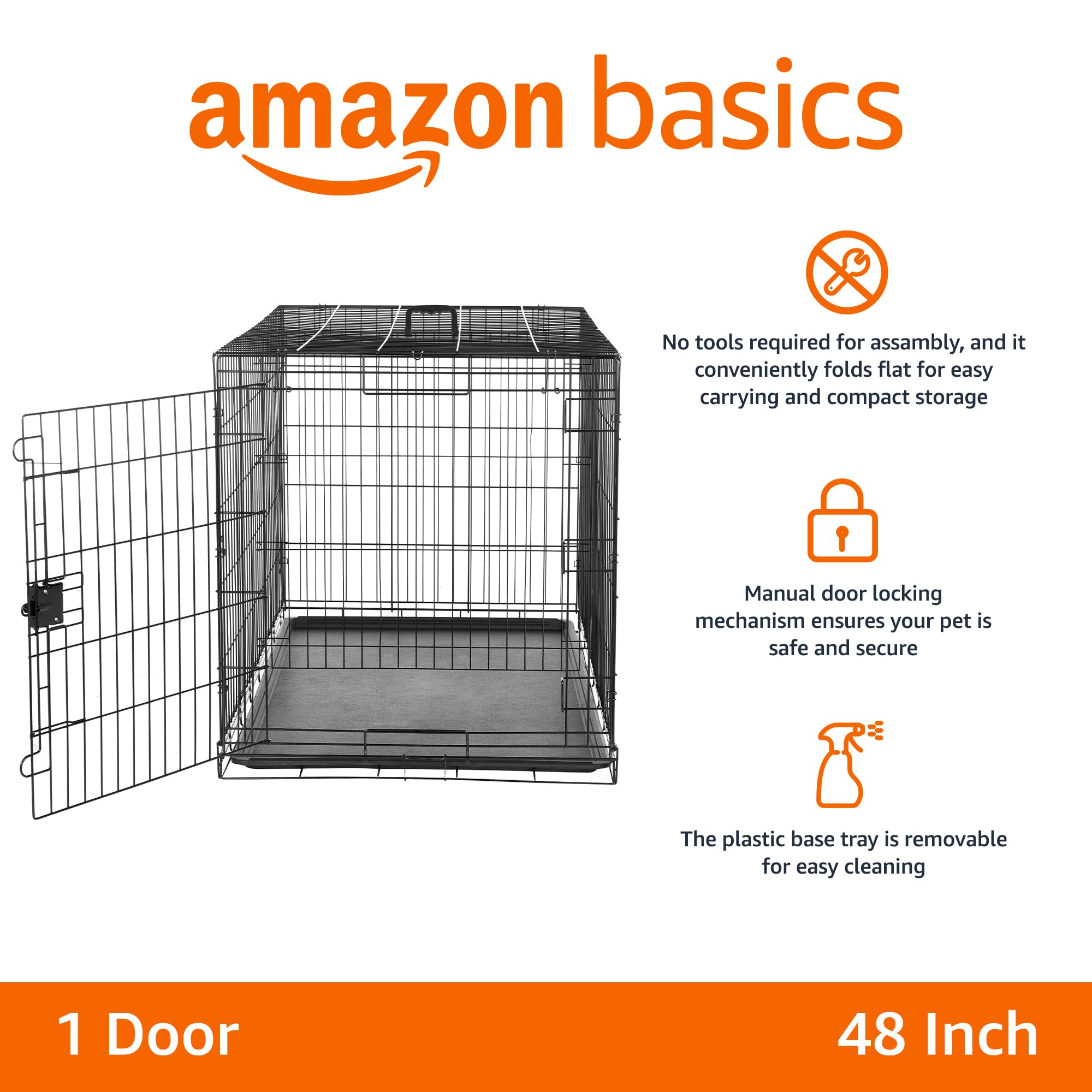 Amazon Basics Foldable Metal Dog Crate, Single Door, 48 Inch