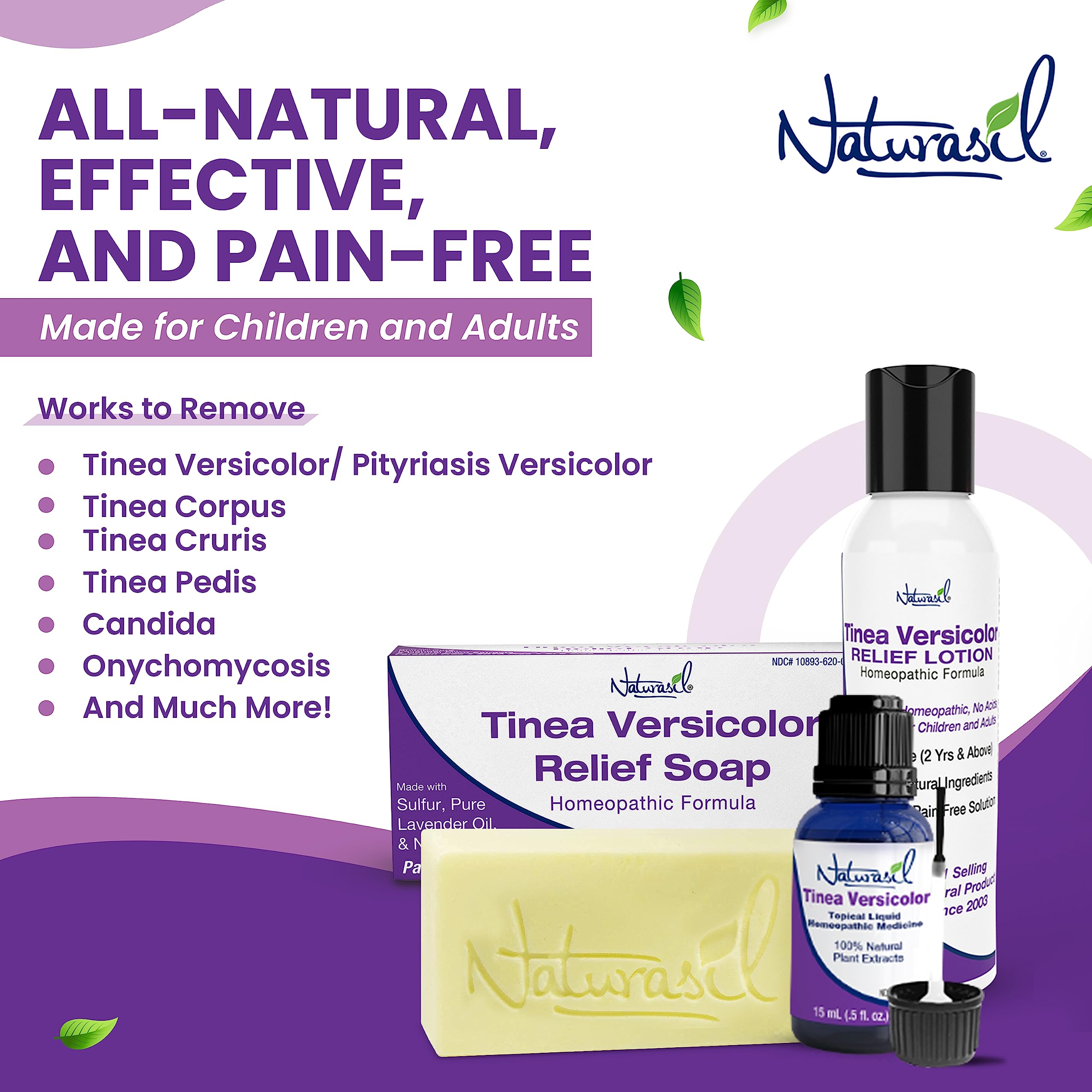 How to Use – For best results, cleanse with Naturasil Tinea Versicolor Soap before application. Apply lotion three times per day to the desired area. Shake well before each use. Exposure to natural sunlight may help support the skin’s appearance and tone.
