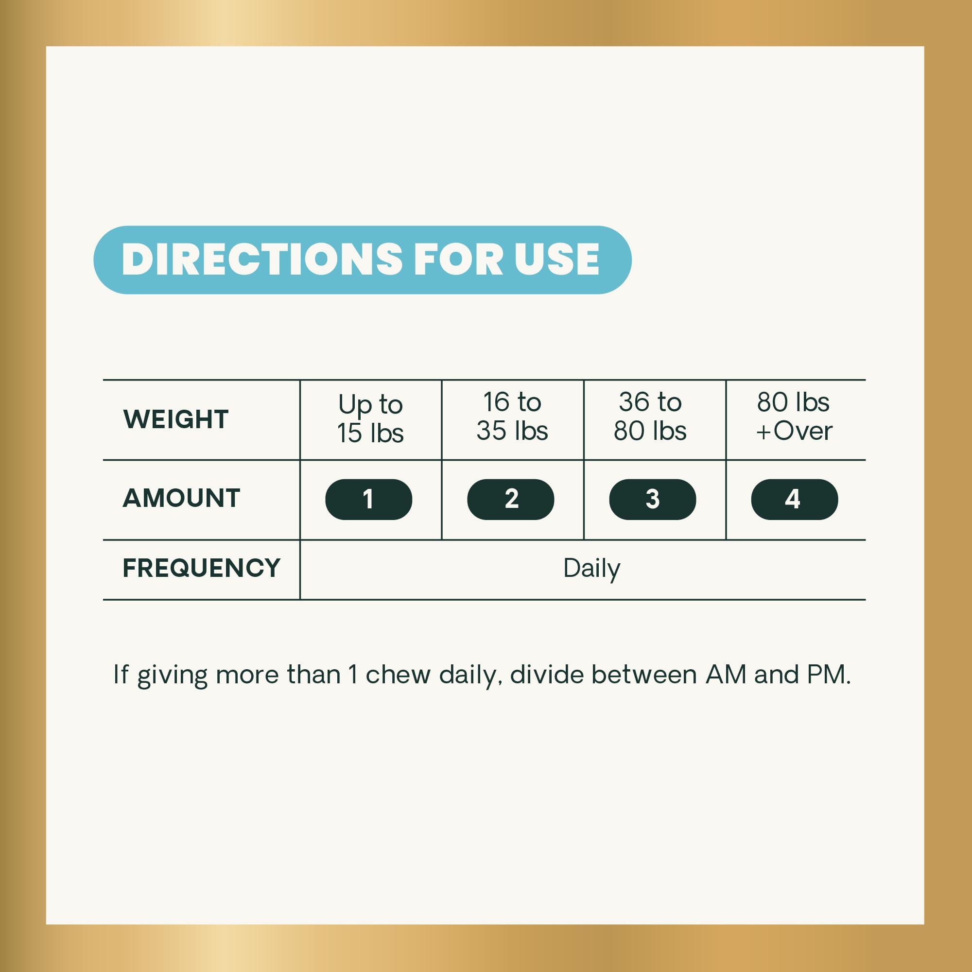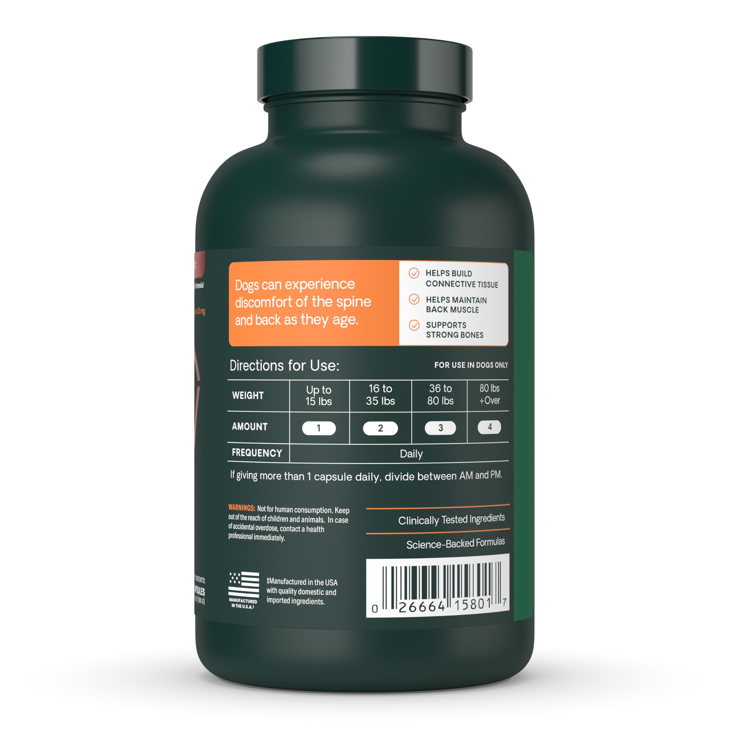 Vet-Formulated Spine Support: A comprehensive spinal supplement designed specifically to support back and spine health and comfort in dogs, including connective tissues, spine, and discs