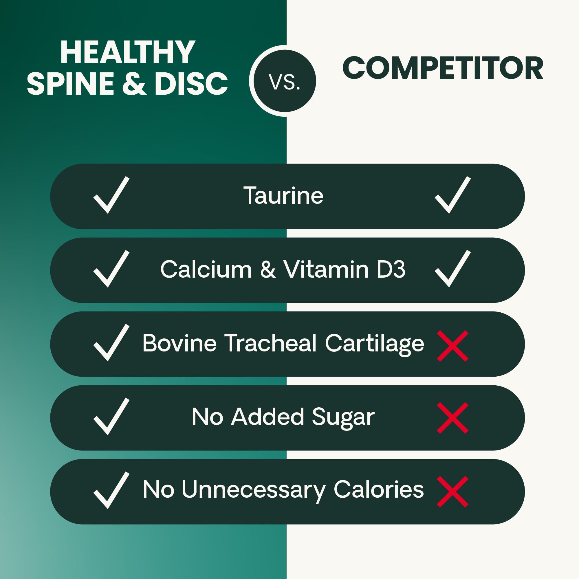 Science-Backed Ingredients: Healthy Spine & Disc combines bovine cartilage – a natural source of chondroitin - with amino acids, vitamins, and pepsin to help improve comfort, mobility and flexibility in the back