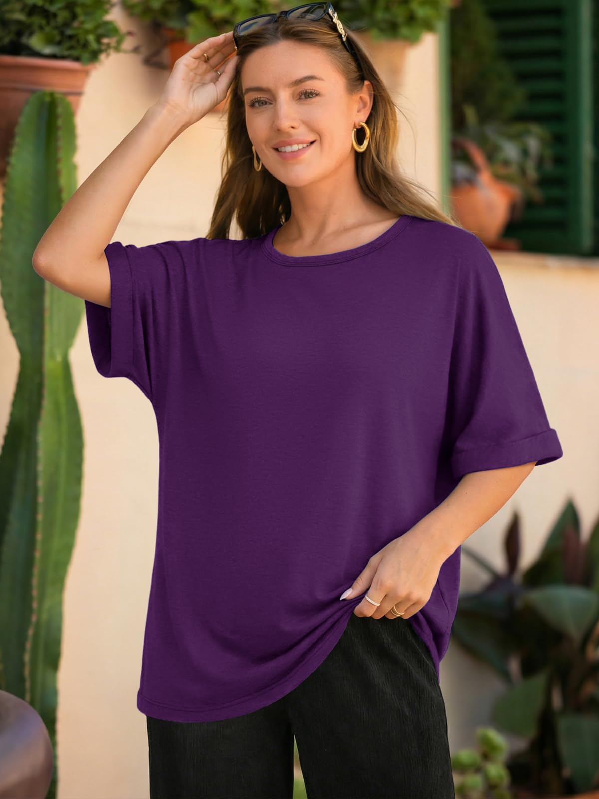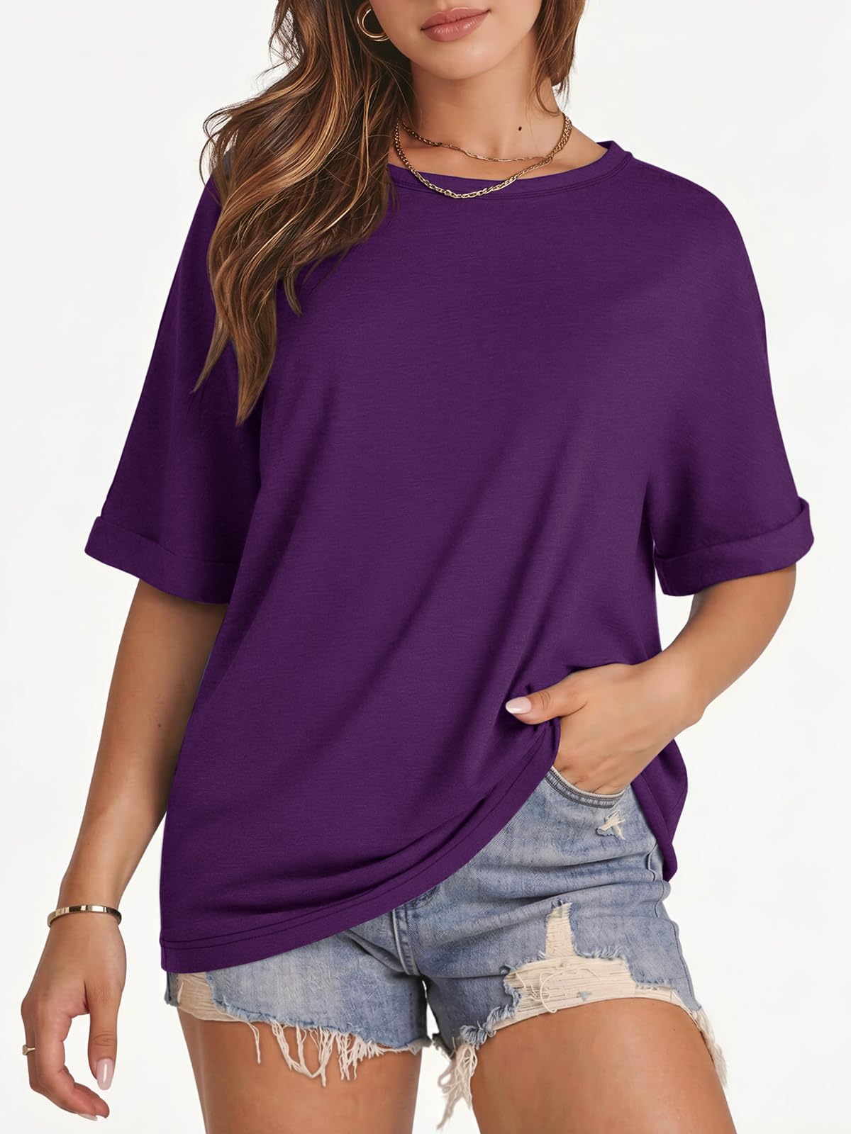 Features: Plus Size,Casual Crew Neck, Rolled Sleeves Design-Adds a Nice Little Details to the Simple Tee, Plain Basic T Shirts. Perfect to Wear in all Seasons.
