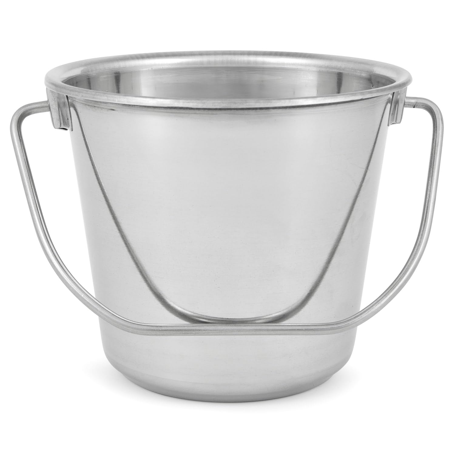Crafted for versatility, Jeffers Multi-Purpose Stainless Steel Pails with Handle are ideal for daily tasks in the barn, home, garden, kitchen, or kennel. These heavy duty, rust resistant stainless steel pails are non toxic, dishwasher safe, and built to last. Perfect for holding water, milk, food, pet feed, chicken scraps, popcorn, candy, garden tools, toys, ice, or even as flower or plant holders. Great for milking cows or goats, feeding dogs, cats, livestock, or using in kennels, stables, barns, or chicken coops. Features a round top quality design and convenient handle for easy transport and hanging on fences, walls, or hooks. Use as a watering bucket, mop bucket, treat container, storage bin, planter, or utility pail. Stainless steel may show superficial oxidation, which wipes clean easily. A durable, multi-use bucket for home, farm, or outdoor use - store food, bones, fish, drinks, bait, compost, grains, or even use during parties or camping. Available in different sizes —2 quart, 6 quart, and 13 quart.