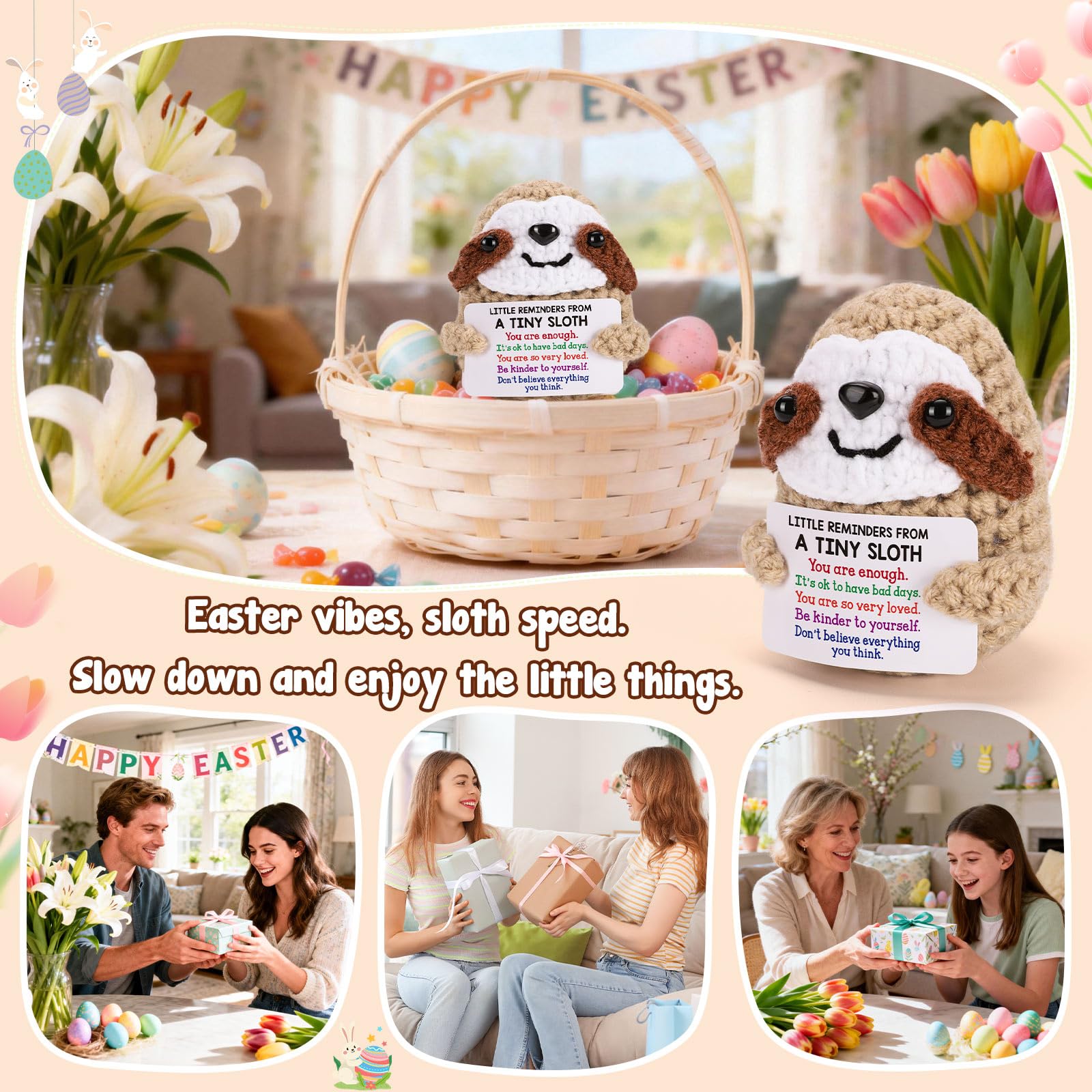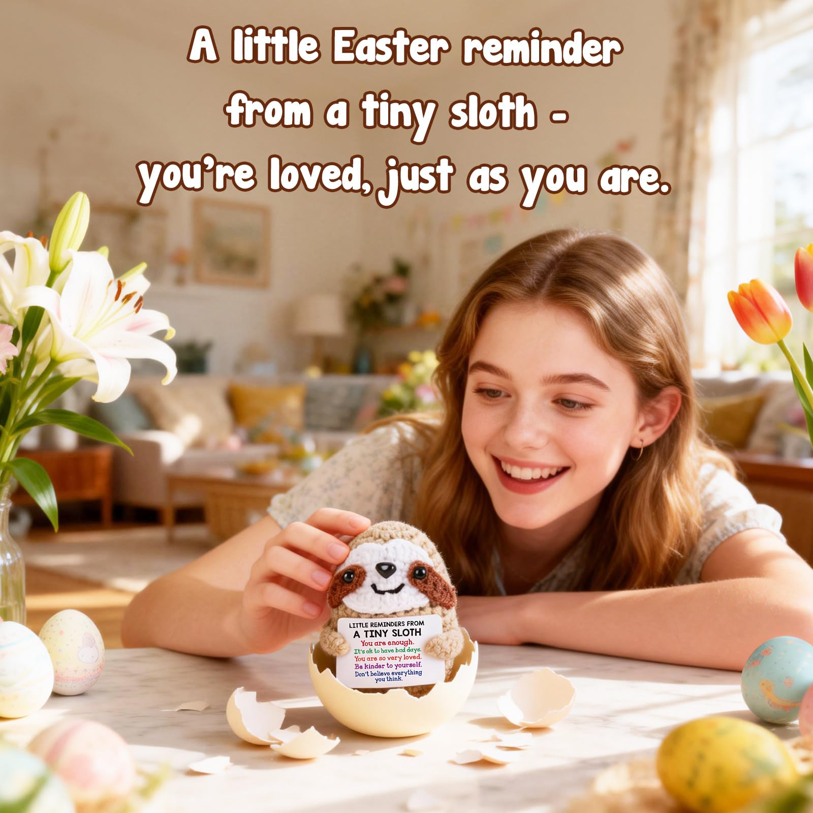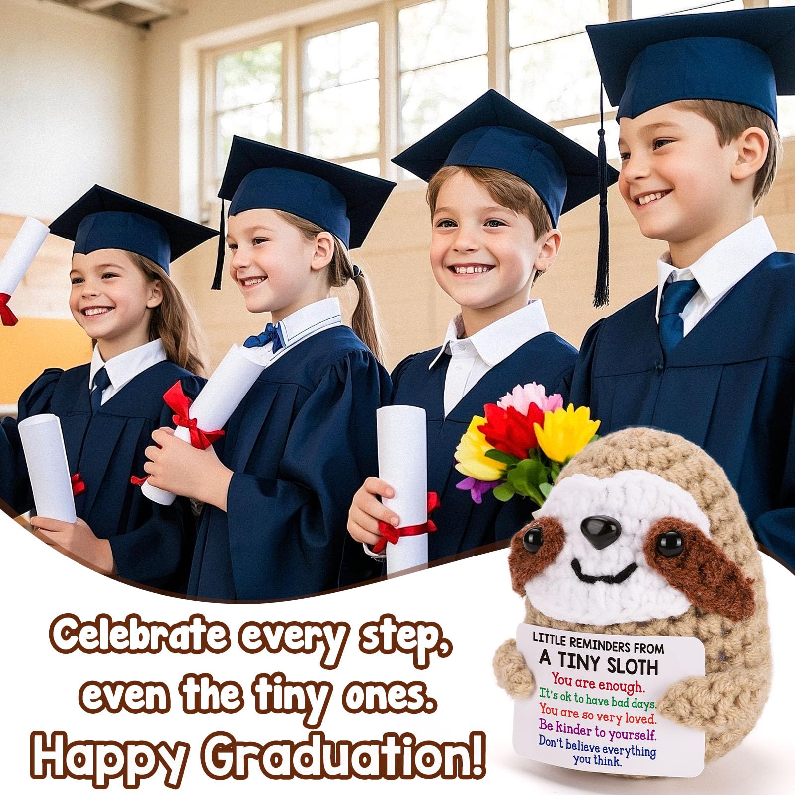 Affirmation Gift of Tiny Sloth: Perfect for birthday, graduation, Mother’s Day, Valentine’s Day, Christmas, or simply as a thoughtful surprise, this mini sloth serves as a sweet affirmation of care and belief in the power of positive. It's a unique gift that can accompany anyone through tough times and serve as a gentle reminder of their strength and excellence.