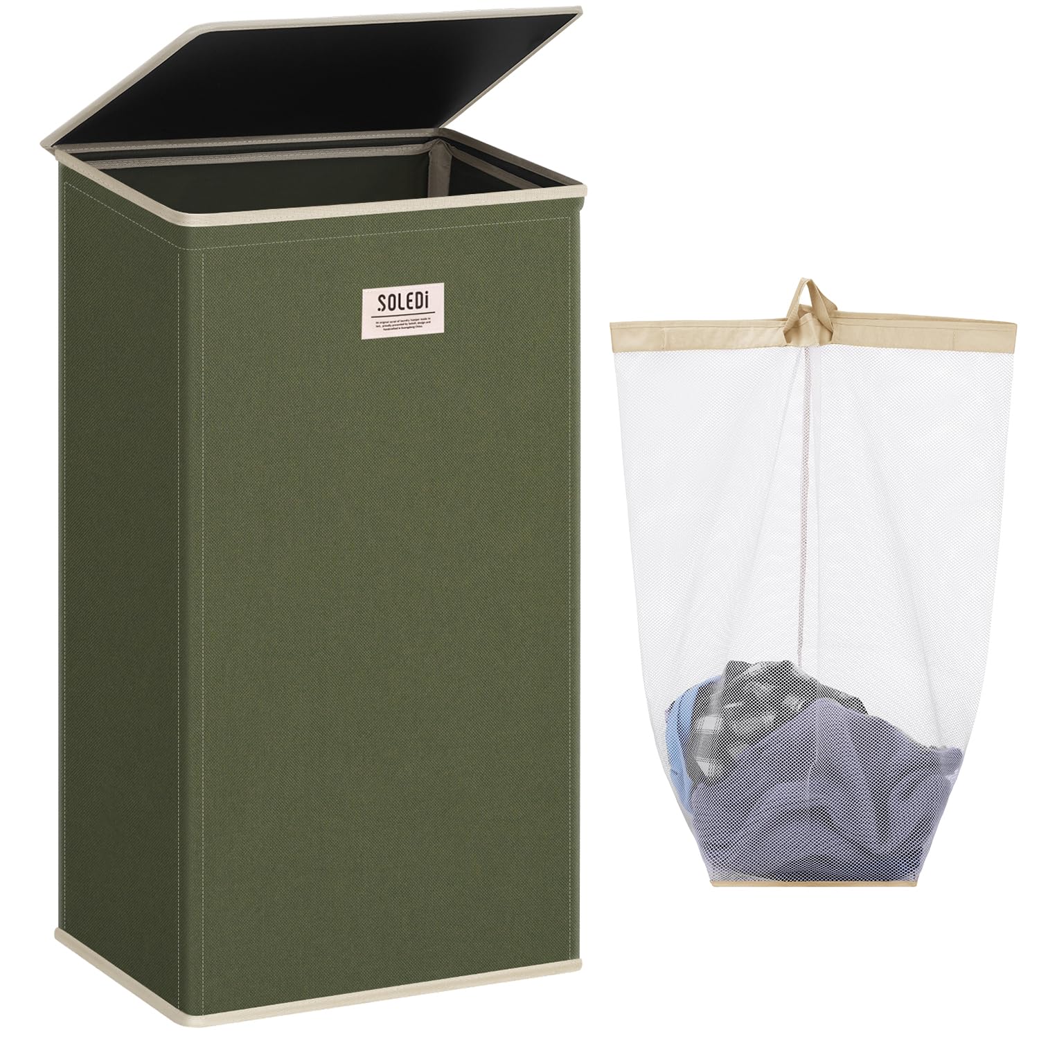 【100L Super Capacity】SOLEDI clothes hamper standing size 16.3"L×12.4"W×30.1"H, 100L large capacity clothes bin to meet the week's change of clothes storage, reduce the number of weekly trips to the laundry room. 100L tall laundry basket is large enough to hold all the family member's clothes or children's toys. Good choice for campus dorms or family life.
