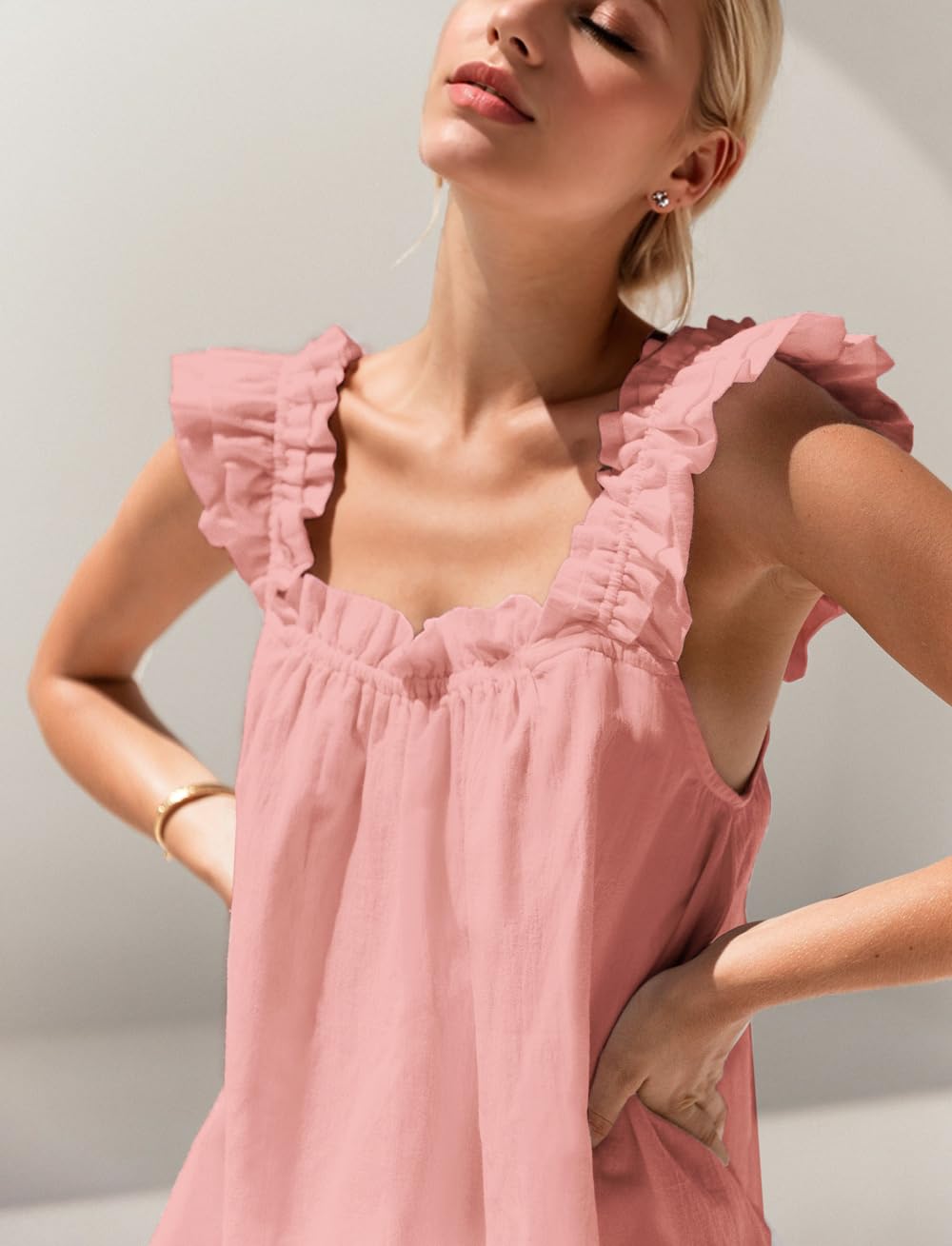 Classy Design: Our Women’s PJ sets feature a sleeveless top perfectly complemented by cozy elastic drawstring shorts with side ruffle detail (no pockets) for a delightful bedtime ensemble.