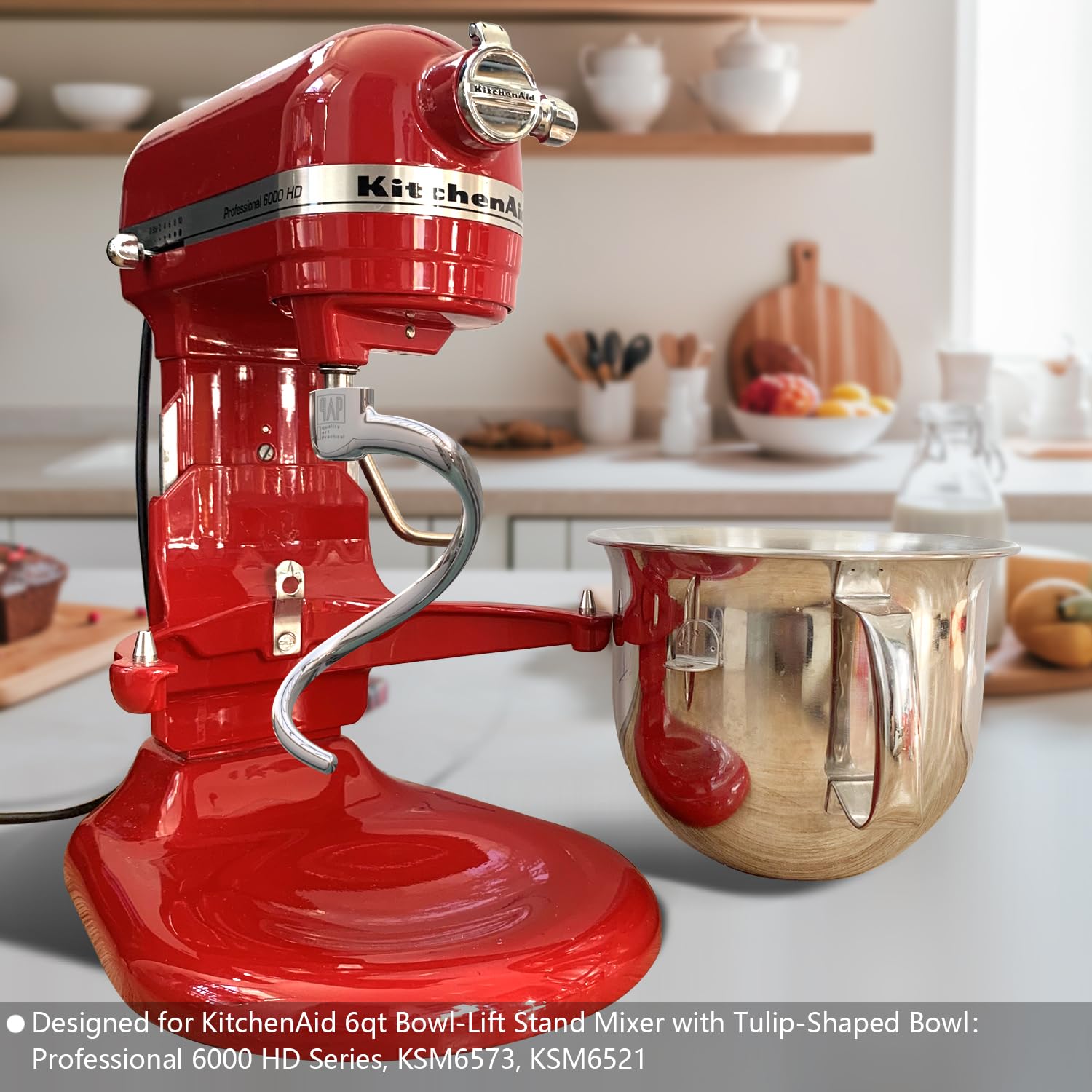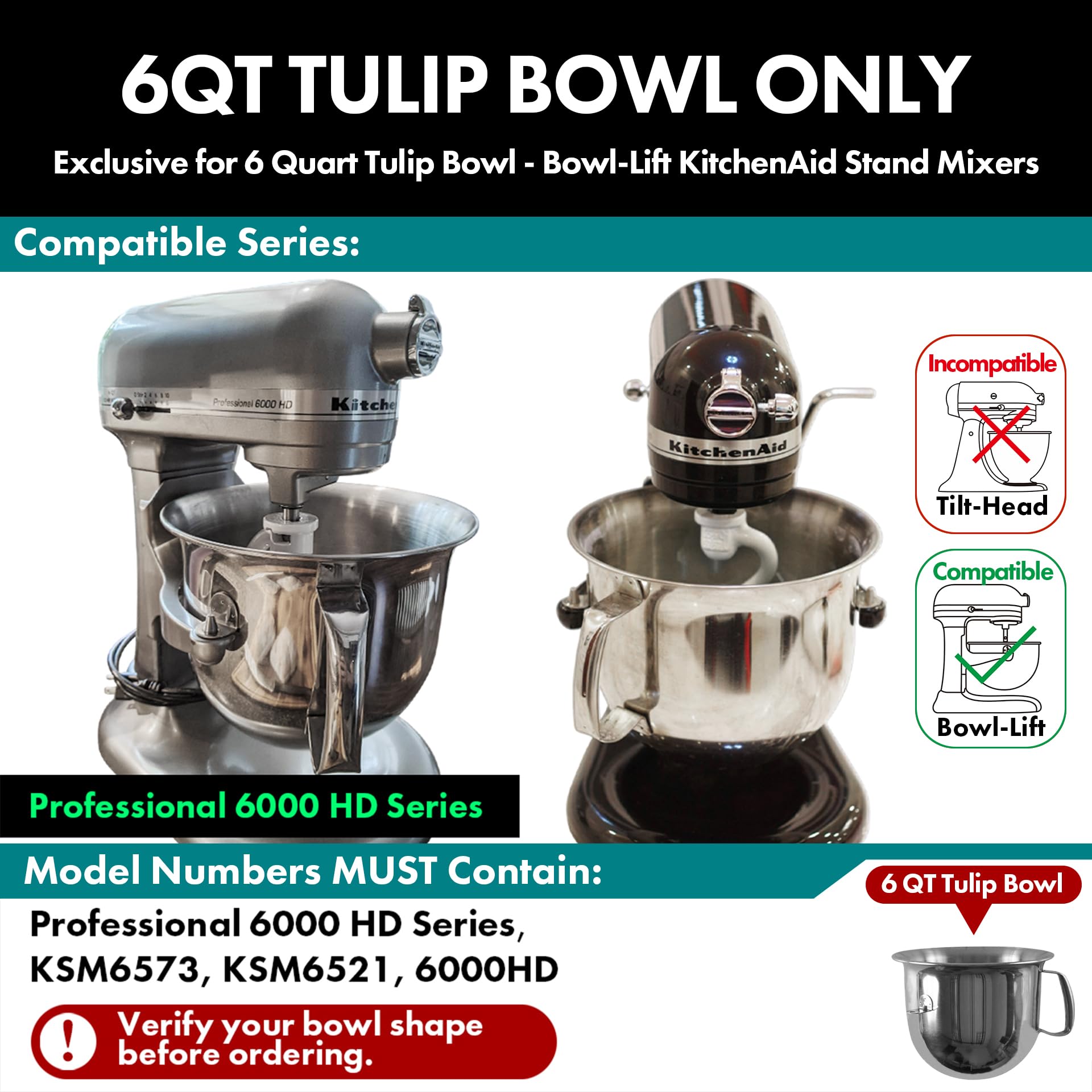 Designed for KitchenAid 6qt Bowl-Lift Mixers with Tulip-Shaped Bowls (Models KSM6573, KSM6521, 6000HD). (Not a KitchenAid Original)