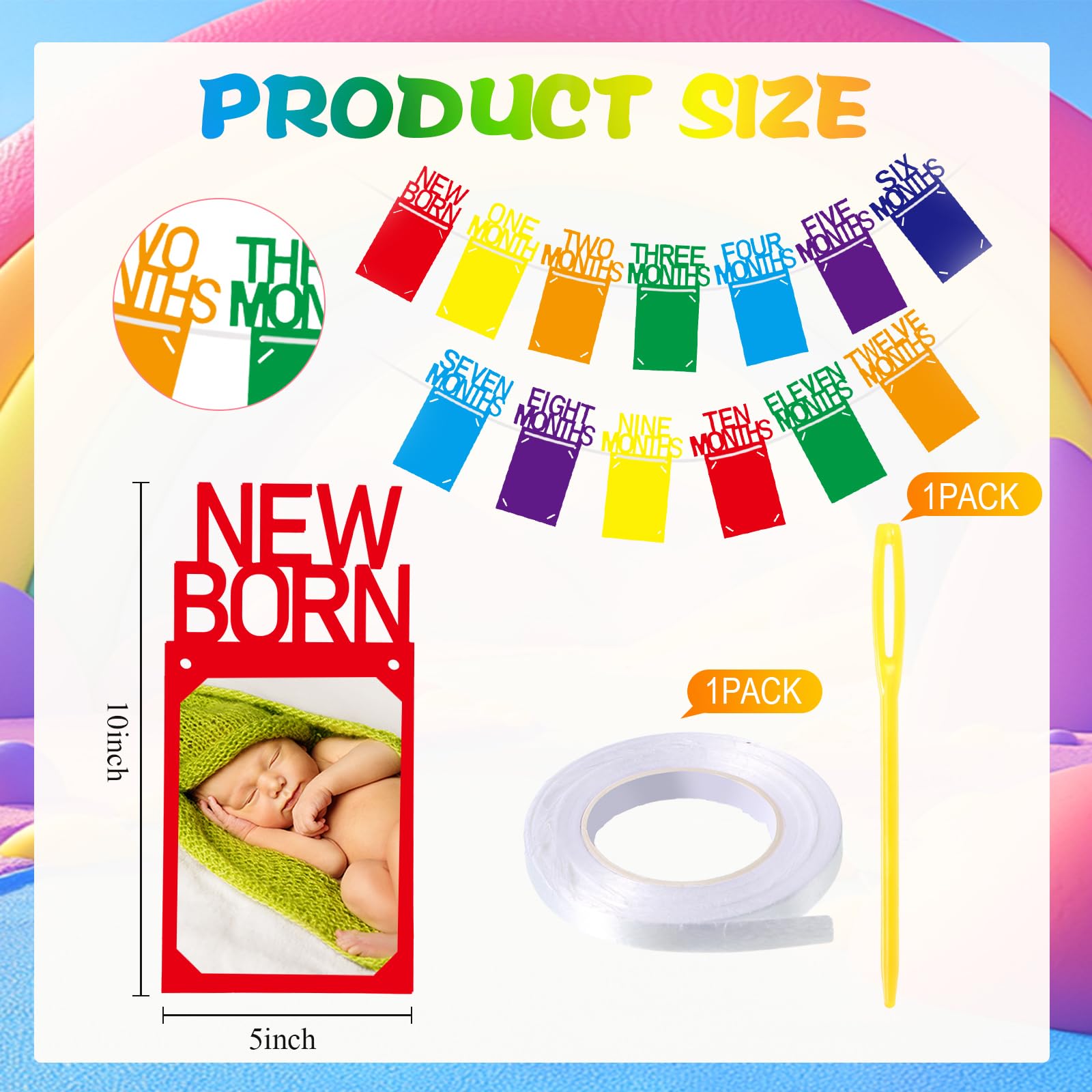 Sweet One Birthday Party Decorations: the kit of first photo banner includes 13 photo frame cards from newborn to 12 months, 1 white ribbon and 1 plastic needle; The rainbow cards include seven colors in a different sequence, which are sure to capture attention, making it ideal for girl monthly milestones garland