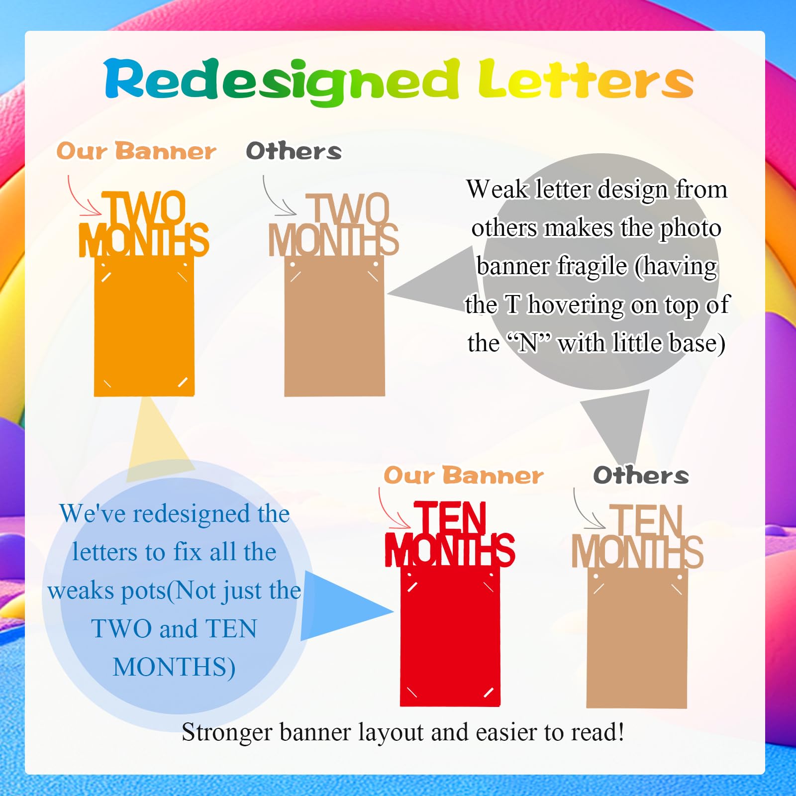 Ideal Party Decoration and Gift: the monthly milestone photograph banner is suitable for a baby's first birthday party, baby shower, nursery decorations, first birthday party, high chair decorations, mantel decor, home decorations; It's an ideal choice for displaying your baby's precious memories from newborn to 12 months