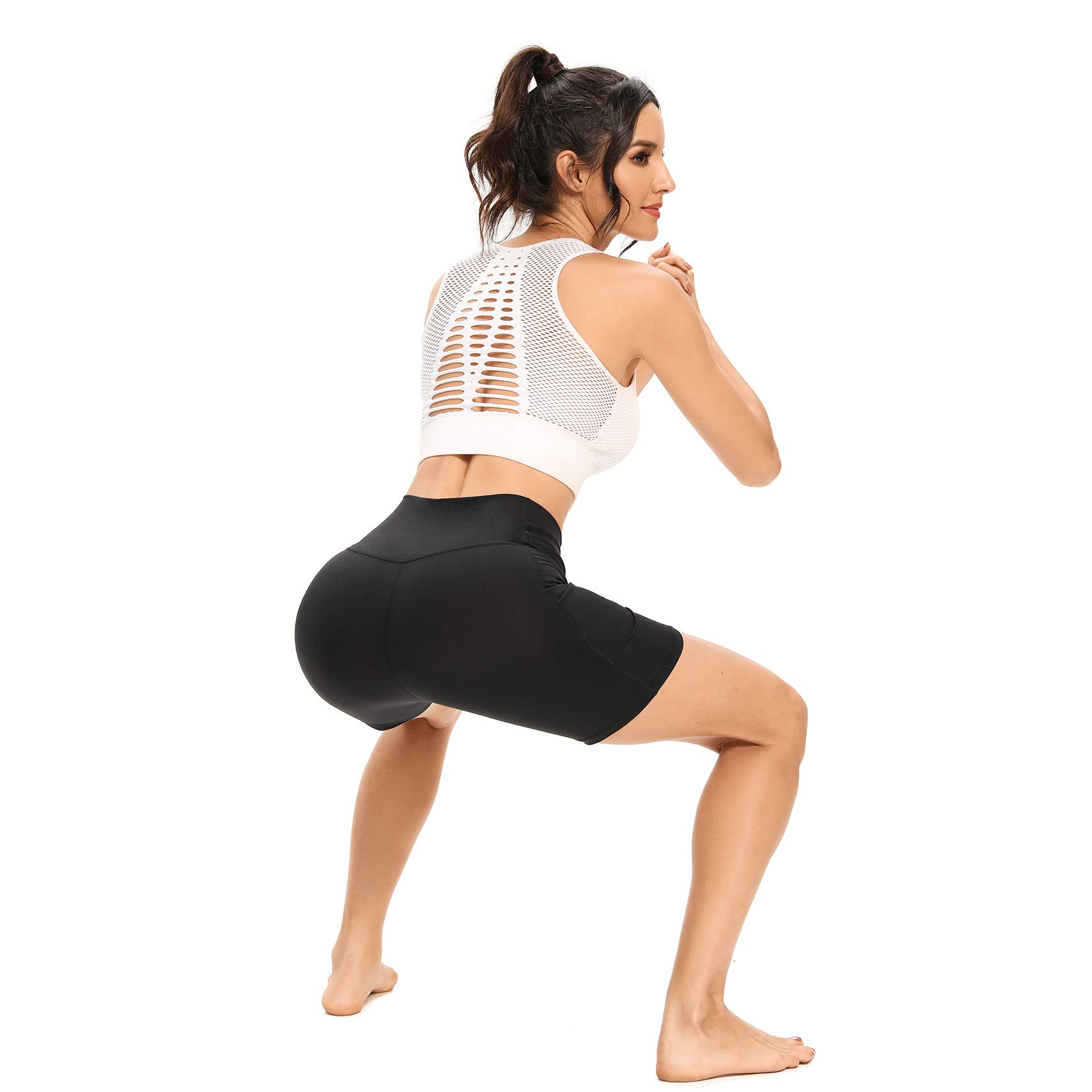FOUR WAY STRETCHY & NON SEE-THROUGH: These 7" high-waist workout shorts is four way stretch. You can feel with great support and exceptional recovery. And it is non see-through when you do exercise.