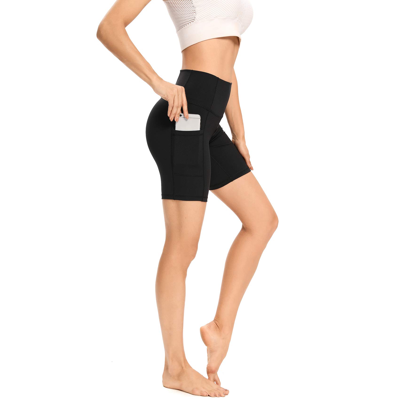 TUMMY CONTROL & PHONE POCKETS: LXNMGO yoga shorts for women are designed with high waisted.The wide waistband for no muffin top. There is support for the waist and nice shapewear. The side pockets can hold your phone, keys, cards.