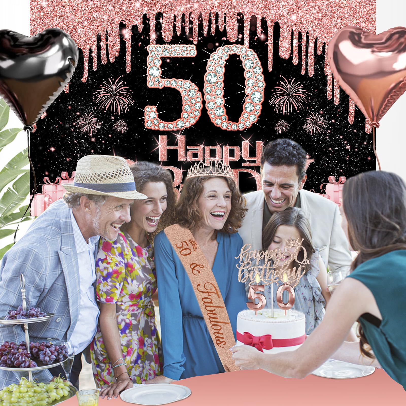 50th Birthday Banner and Tablecloth: The 50th Birthday Backdrop is printed by high-quality digital resolution for Black Rose Gold 50 year old women birthday party theme color. Four copper holes have been pre-made on birthday party banners, so you can easily hang it anywhere. Rose gold tablecloth made of quality waterproof and tear plastic, helpful to clean up fast and easy after birthday party. Large size 108 x 54inches suit for rectangular tables, can be applied indoors and outdoors