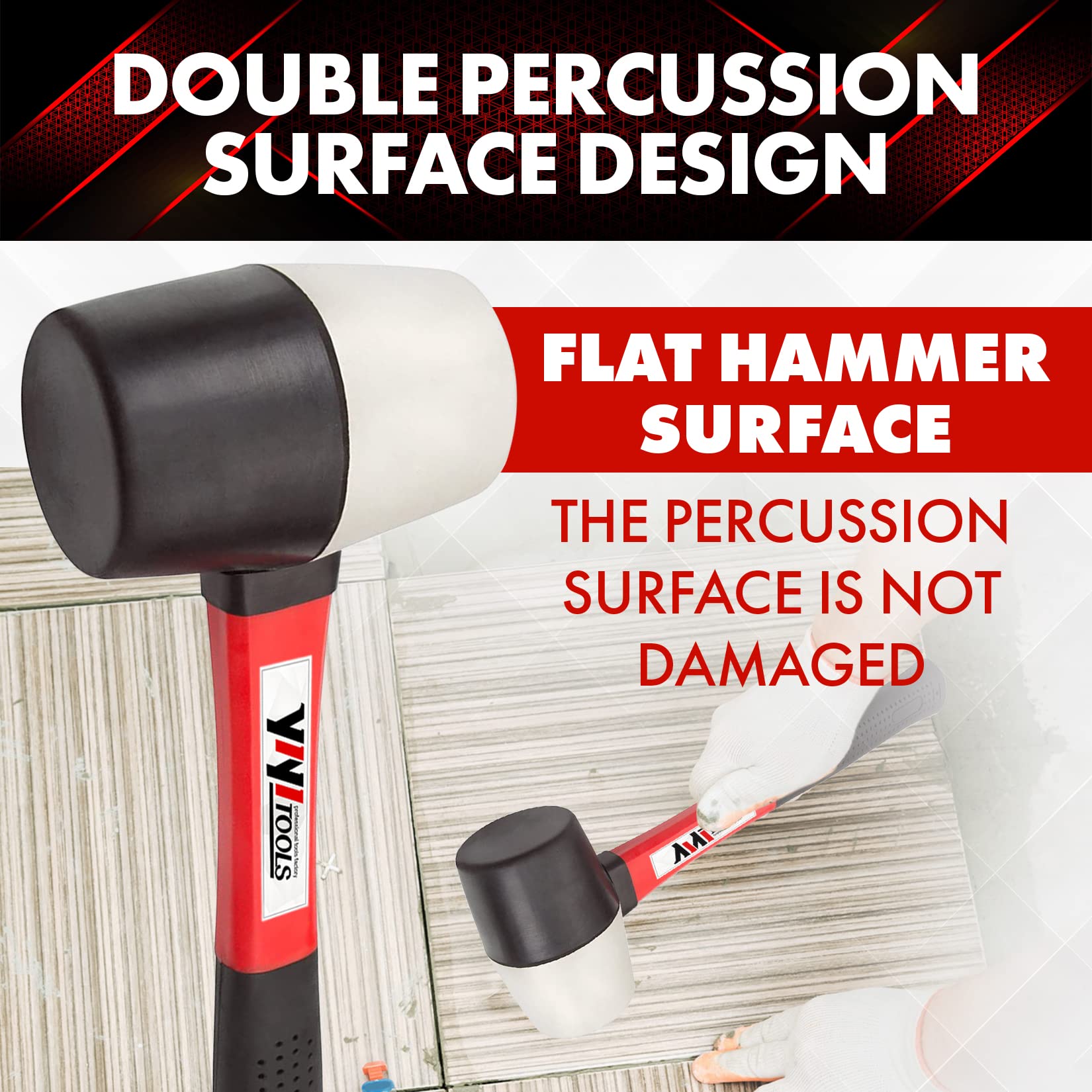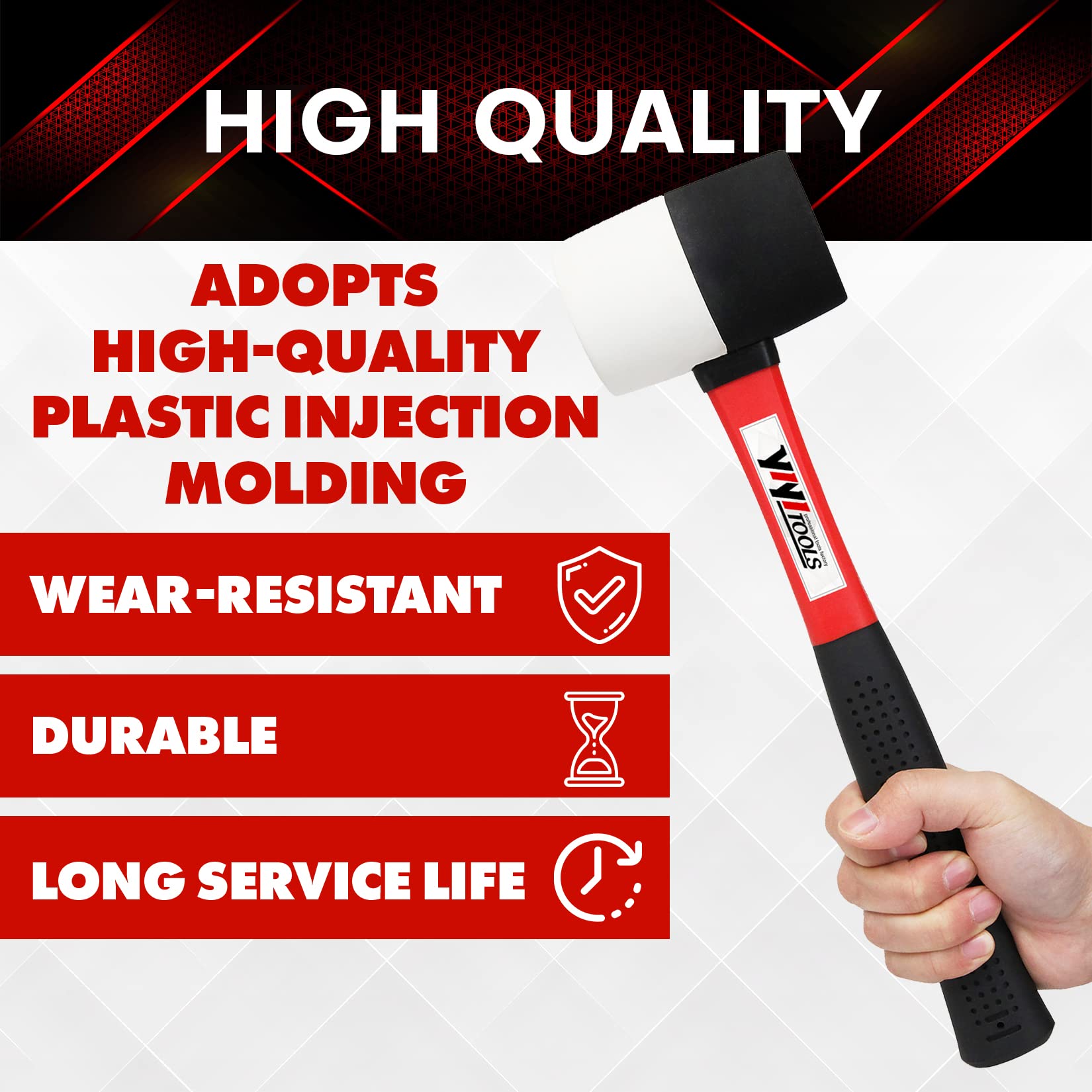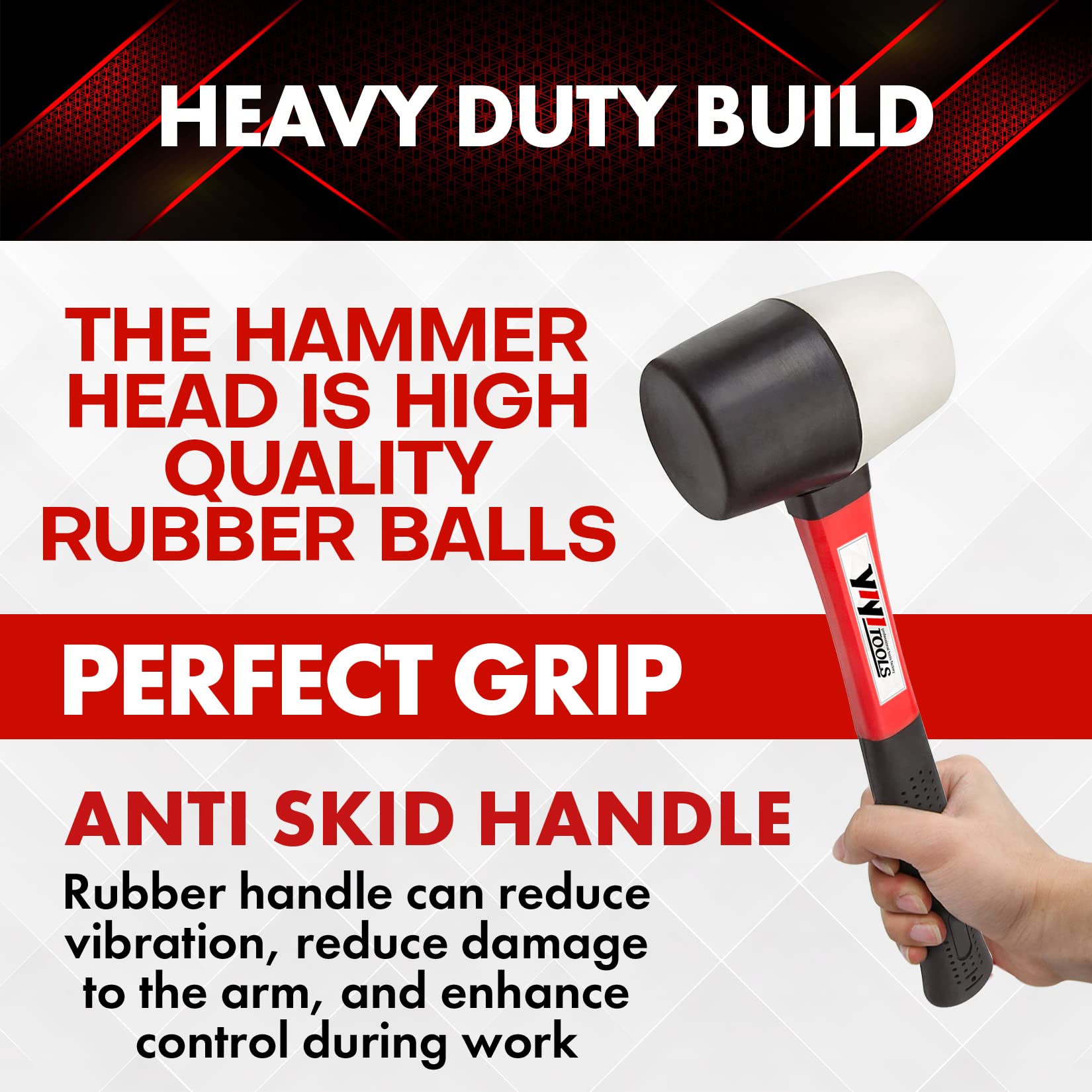 Make Hammering Simpler & More Convenient With YIYITOOLS Rubber Mallet! At YIYITOOLS, we wanted to bring you essential striking tools that would make everyday life simpler. This is why we combine quality materials to bring you our shockproof rubber hammer. The hammer heads are use hammer,High-strength Fiberglass handle core helps absorb vibrations Versatile, Durable, & Functional – Suitable For Any Job Or DIY Project From tiling floors to roofing, our dead blow hammers with ergonomic hammer handles have you covered. They are the perfect choice for any DIY projects and on-site jobs making them just right for both casual and professional use. Features You’ll Love: - Resistant to rust, corrosion, and deforming for long term use - We use quality rubber that offer high temperature resistance - Ergonomically designed handle provides a secure and comfortable grip - Suitable for use construction, woodworking, and automotive applications - Each pack comes with 16oz rubber mallet Make Hammering A Breeze With YIYITOOLS Solid, Sturdy And Comfortable To Use Hammer Set!