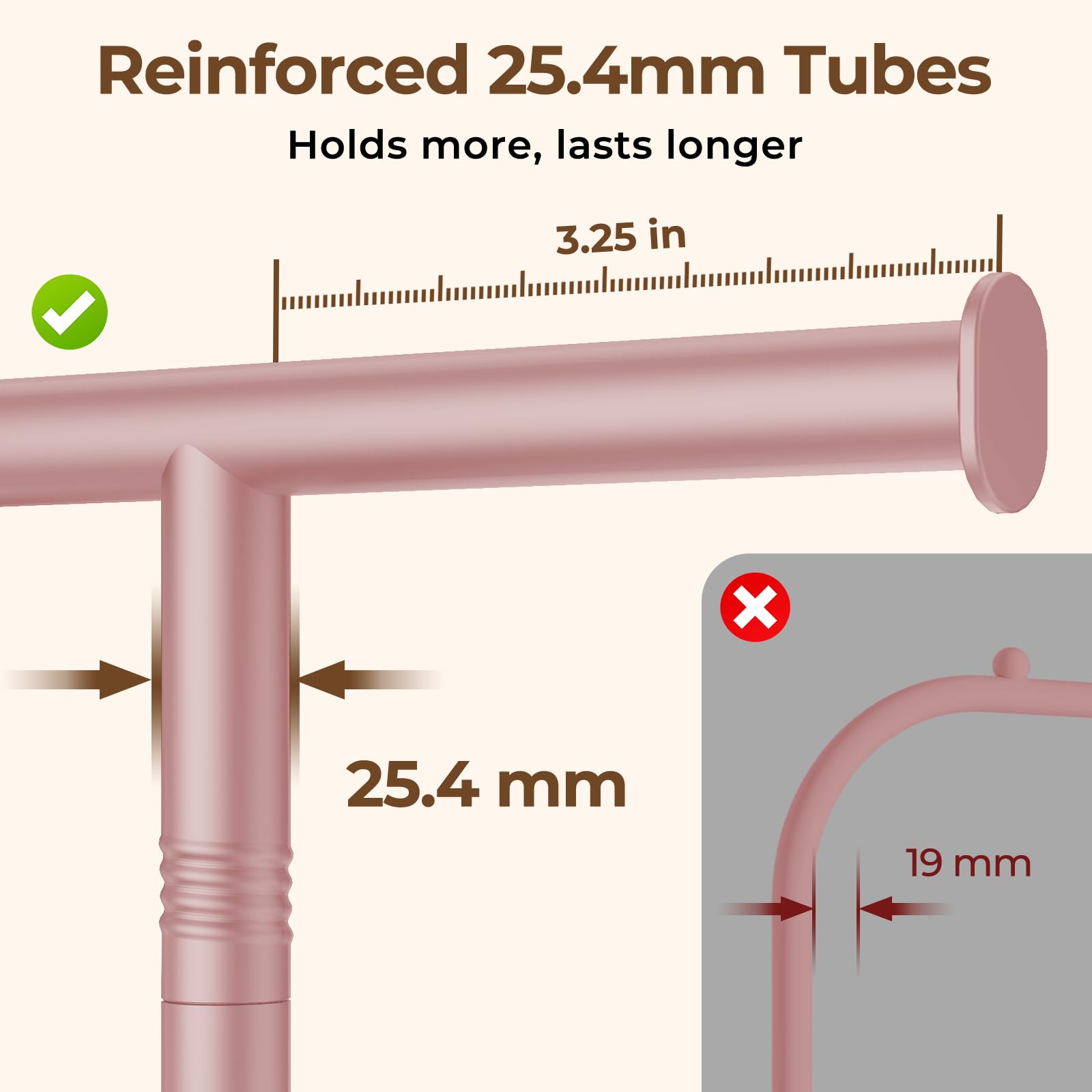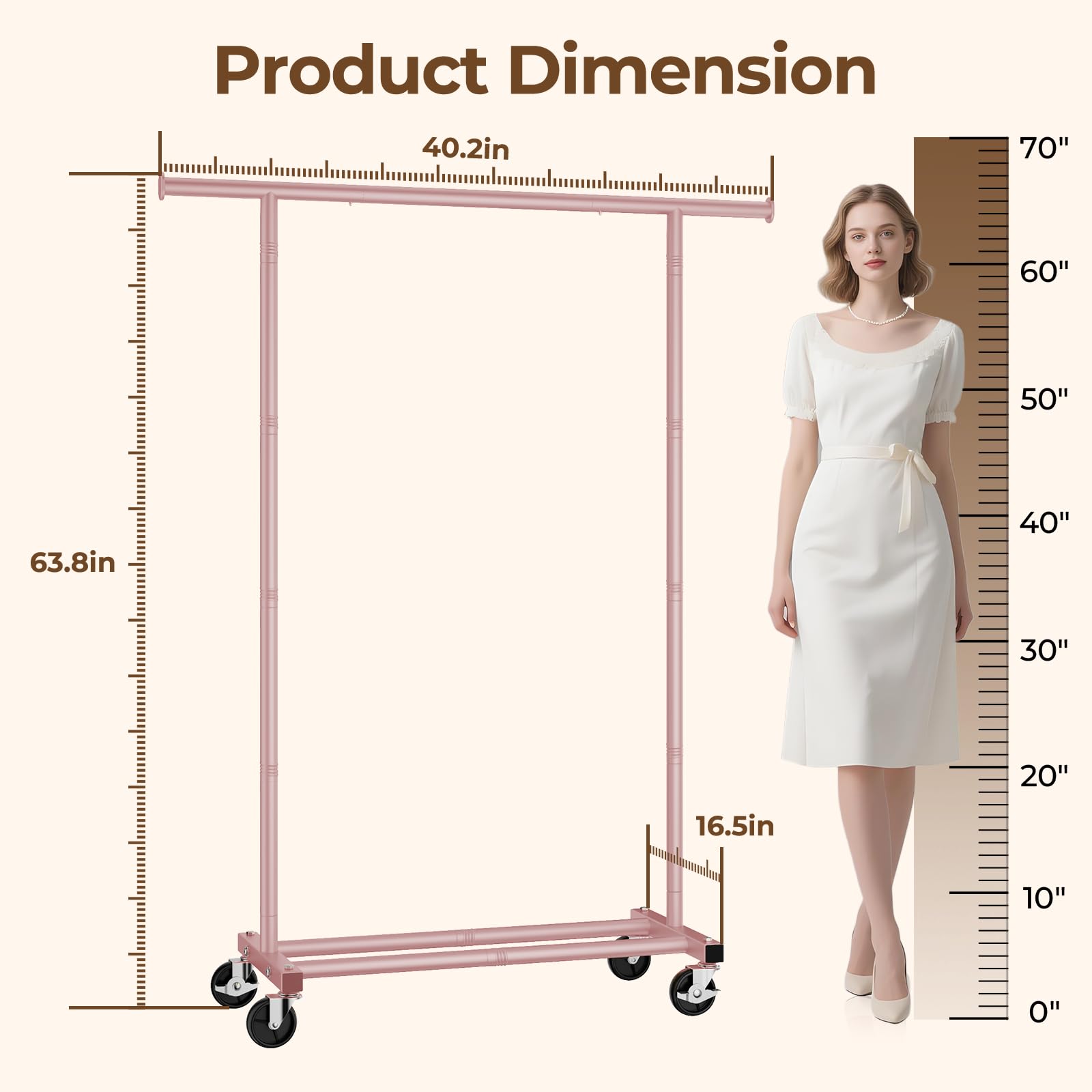 【Sturdy & Perfect Height】Built with 25.4mm reinforced steel pipes, this rack delivers rock solid stability (180 lbs capacity) , while its 63.8" height allows you to hang many pieces of clothes from short tops to long dresses—no bending, no wobbling, no dragging hems!