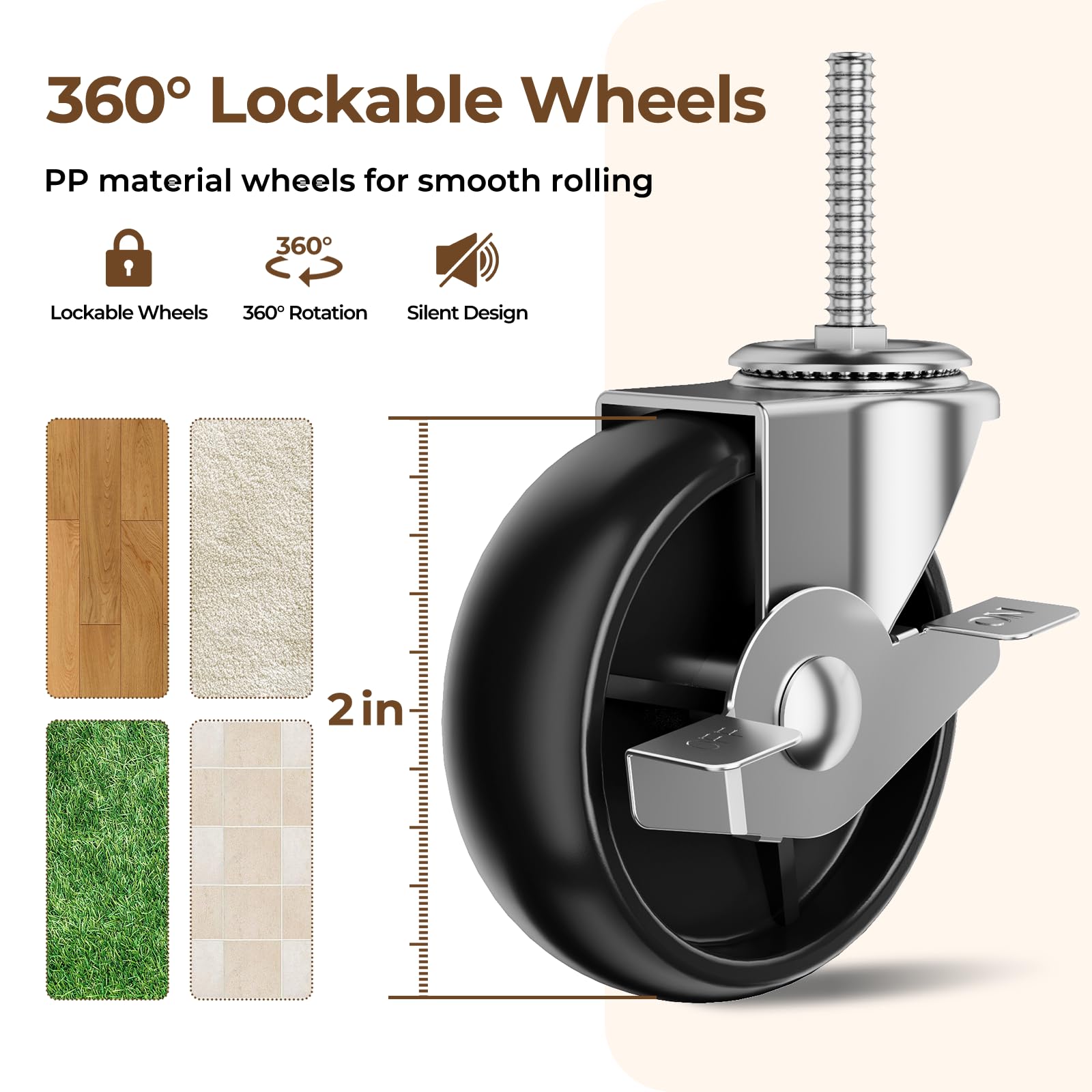 【Movable 360° Wheels】Equipped with four PP material wheels for smooth rolling in any direction, making it easy to reposition your clothing rack as needed. Two lockable wheels provide a secure and stable stop, ensuring your rack stays firmly in place when needed.