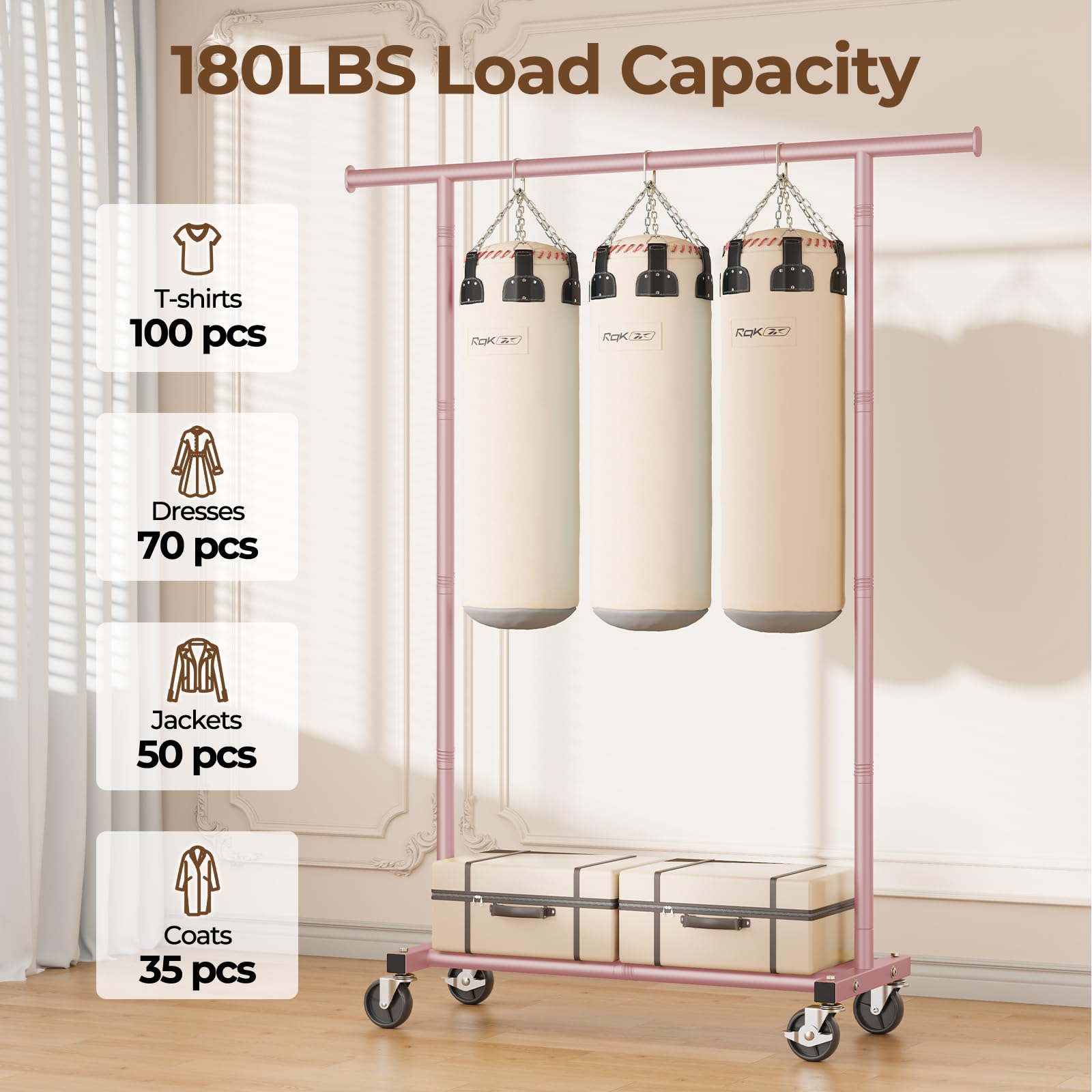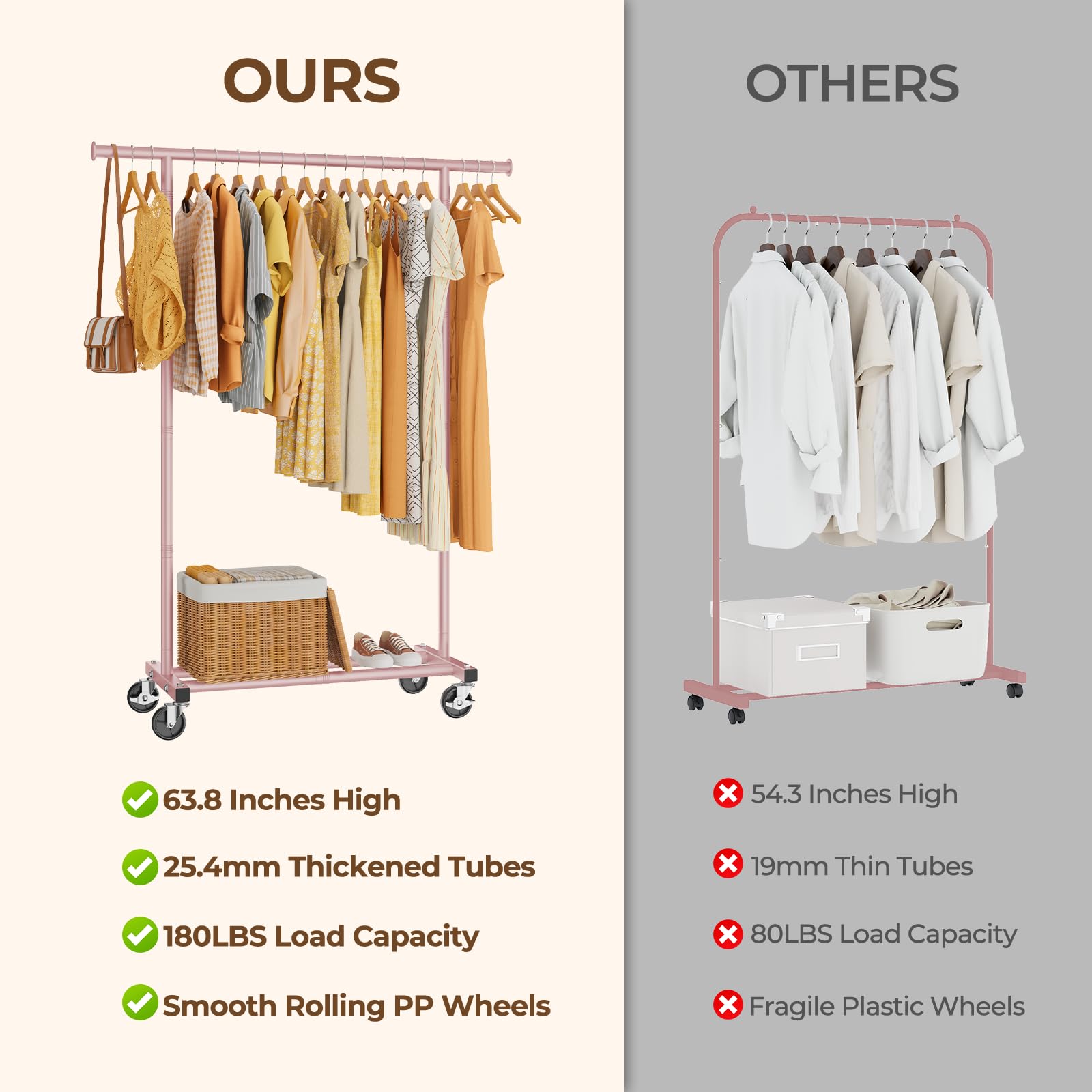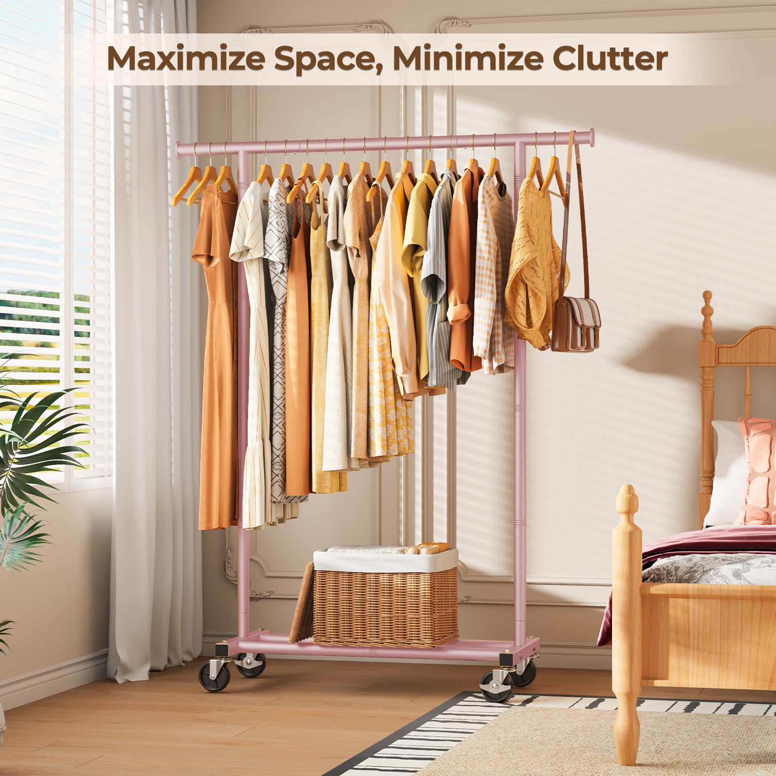HYSEYY Clothes Rack, Clothing Rack for Hanging Clothes, Rolling Garment Rack Sturdy Coat Rack Portable Wardrobe Rack Metal Closet Rack for Bedroom Laundry Living Room, Pink