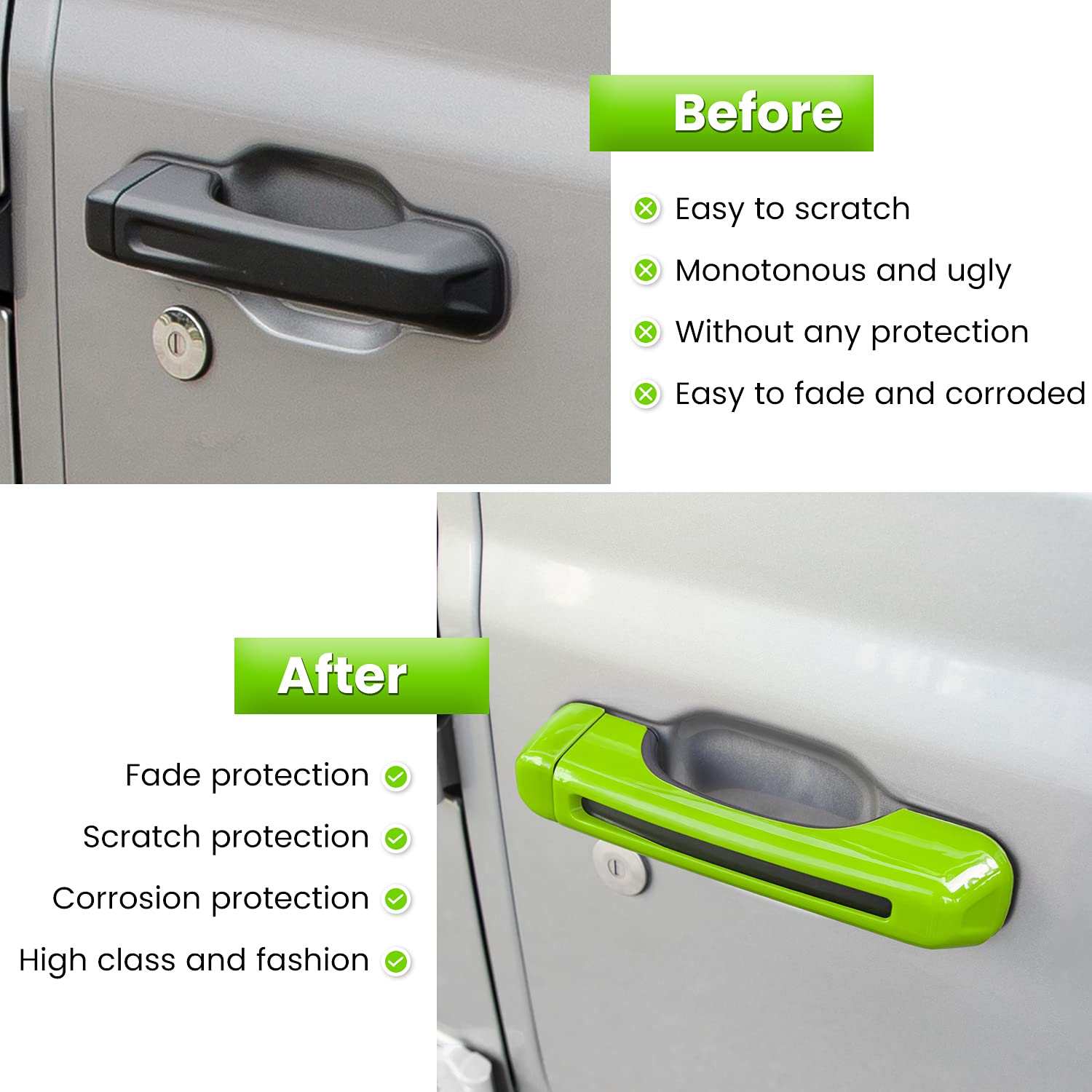 Perfect Upgrade — Provides a high class, unique and fashion decor style to enhance the visual appearance of your car. It can cover existing scratches and prevent your door handles from fingernails, key scratches and etc. Dress up your handles and makes your car out of ordinary.