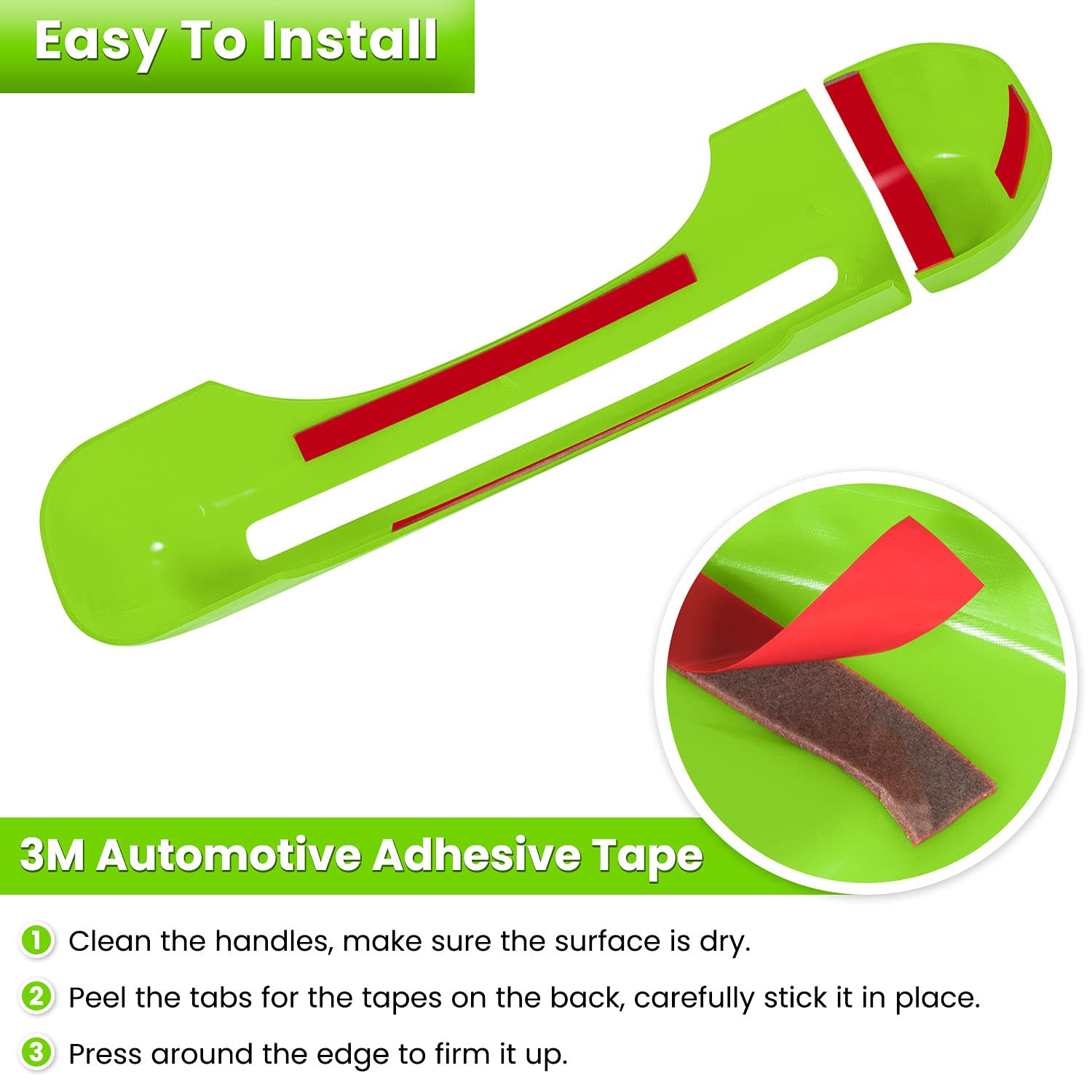 Easy To Install & Clean — No drilling/tools required. No damage to your car. Clean the handles, peel the tabs, then carefully stick it in place. Not easily stained and very easy to clean to make it look new for a long service life. (Use a lighter to heat the 3M adhesive tape slightly for better effect)