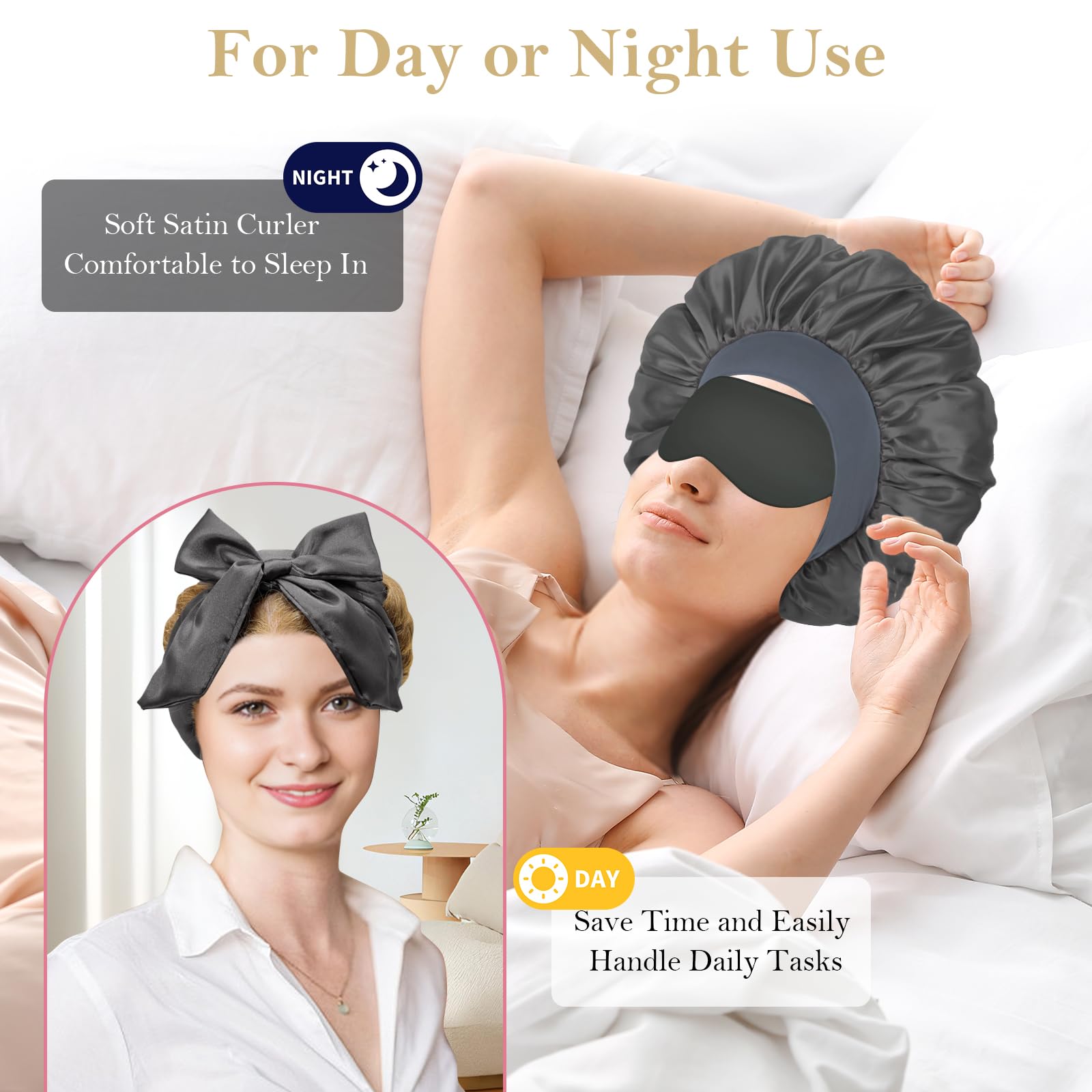 BYE-BYE Frizz: This no heat hair curlers is made from luxurious satin material, which is soft and comfortable, helping to reduce frizz and prevent static. Whether used overnight or for daily styling, it keeps hair smooth and creates natural, shiny curls