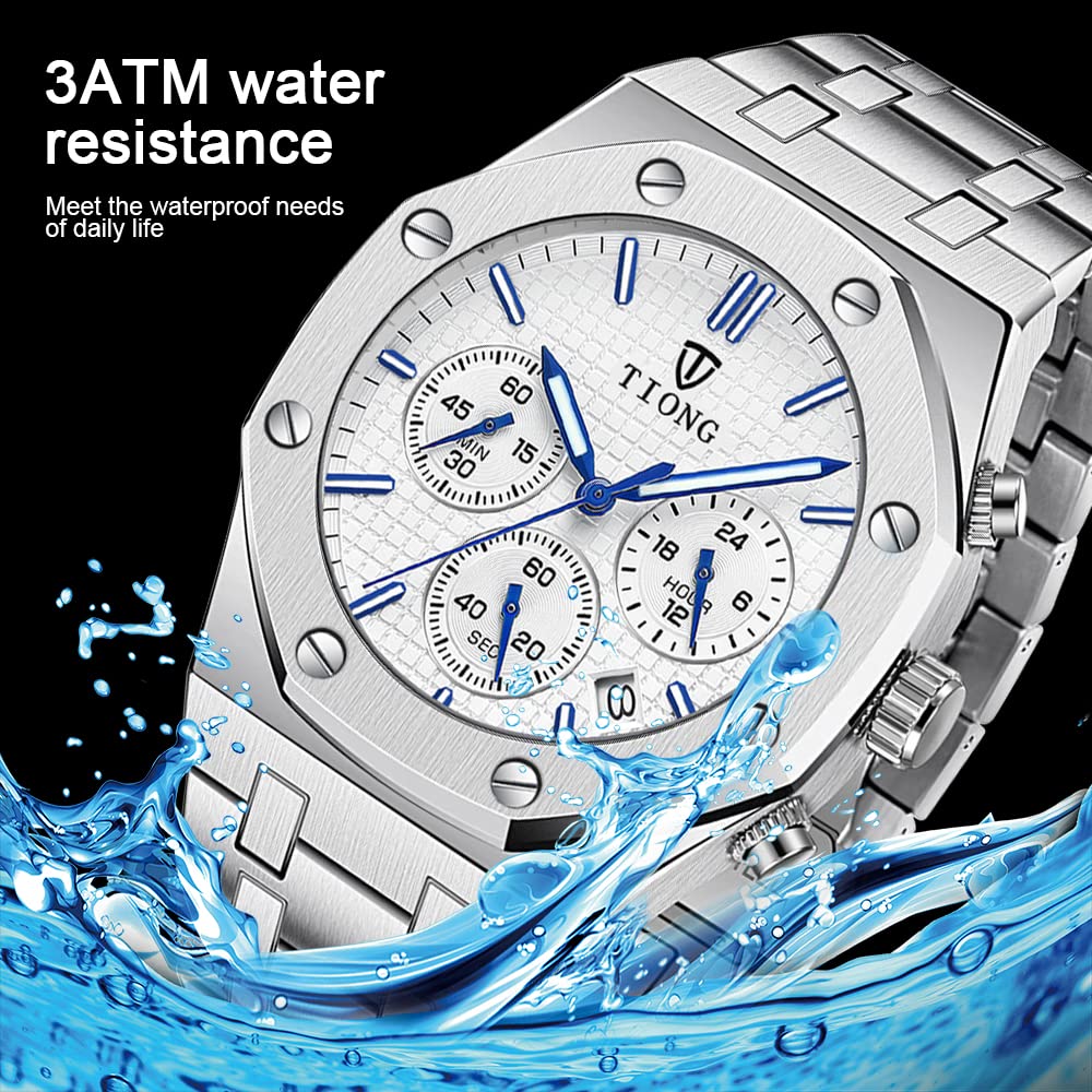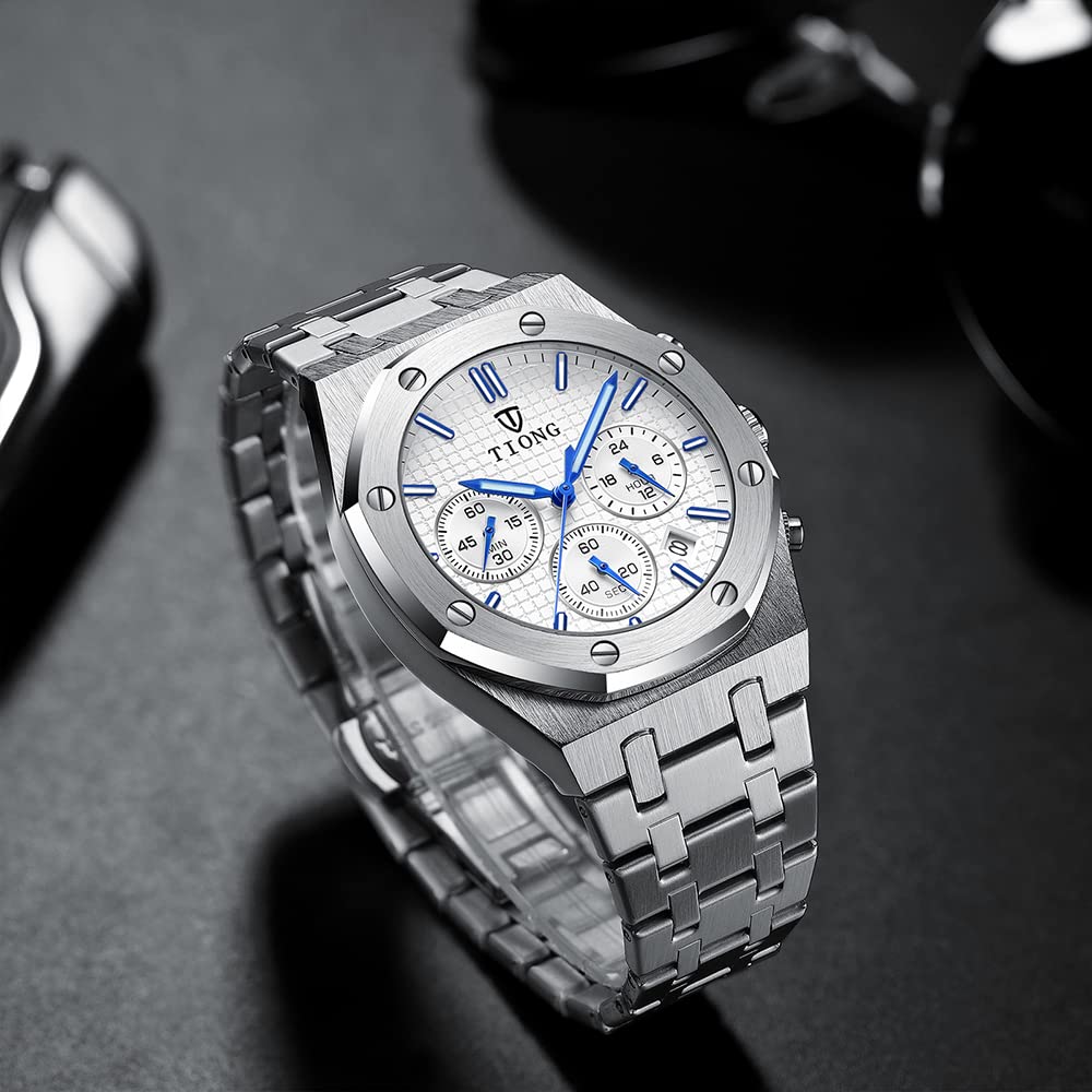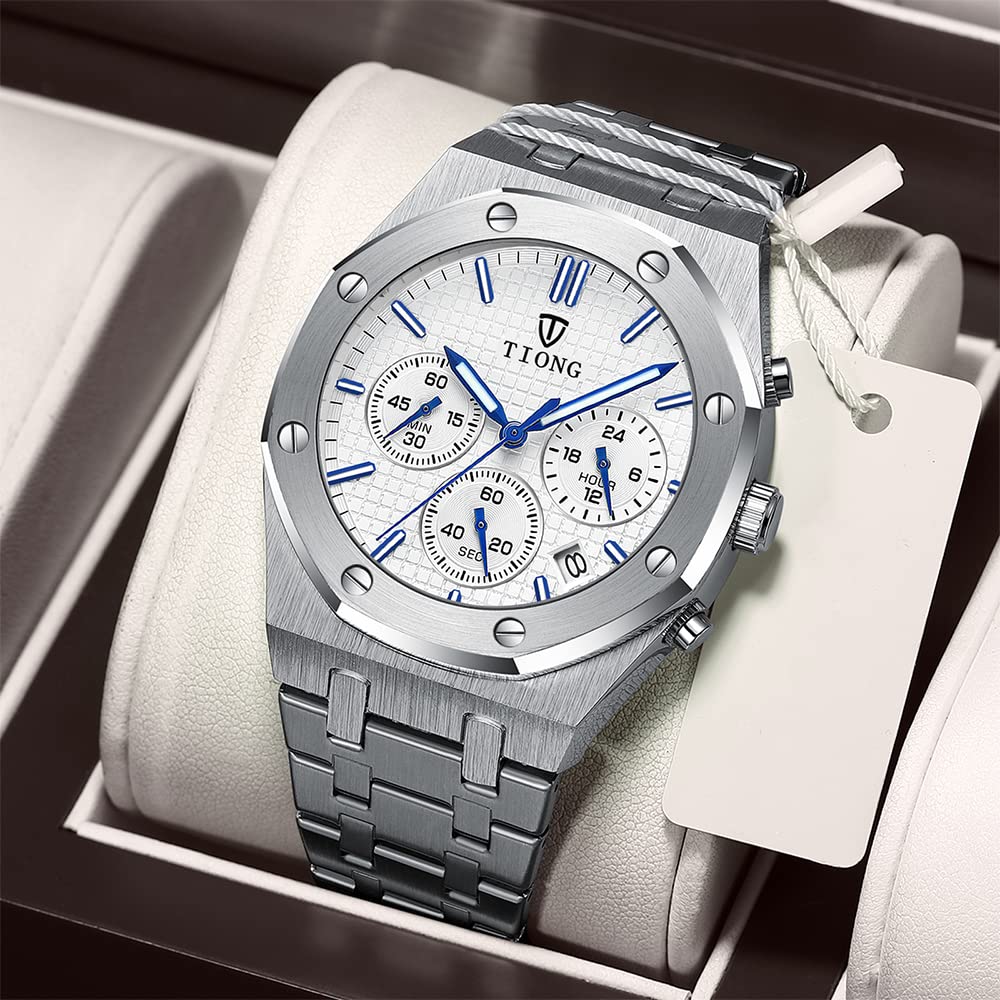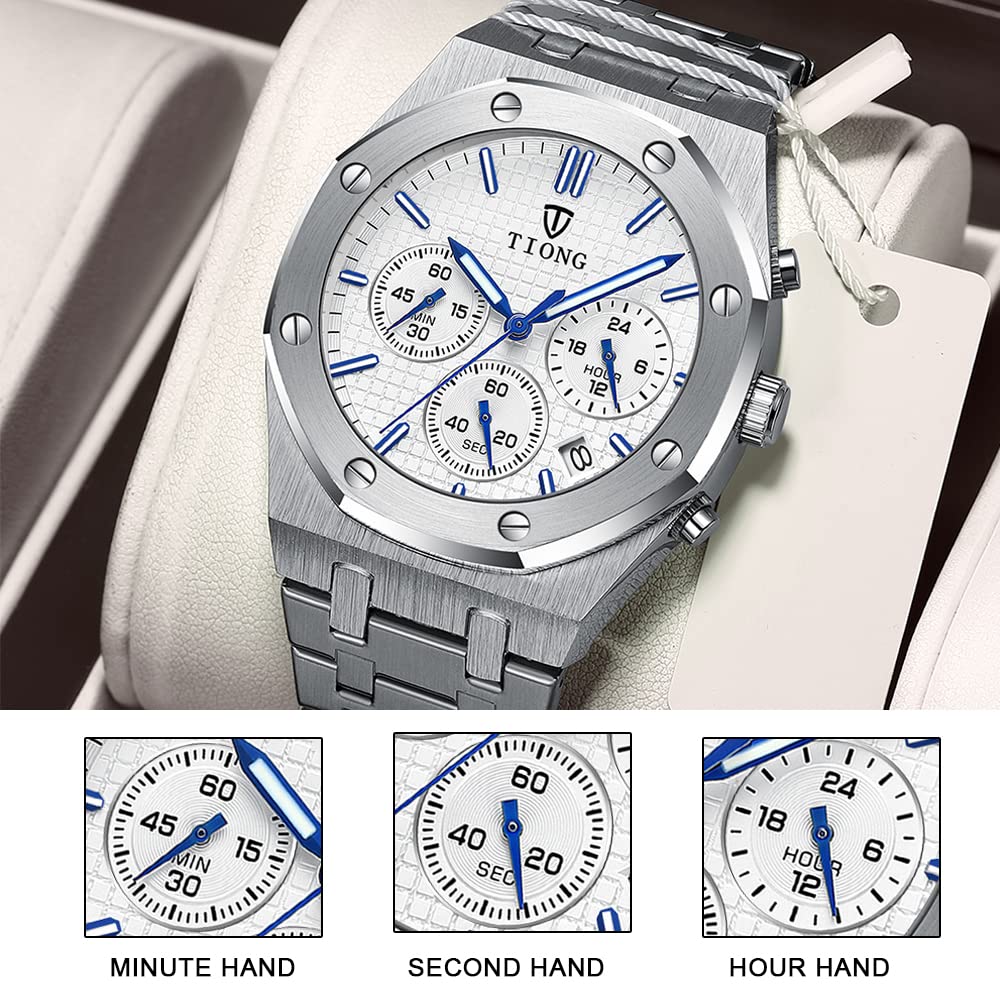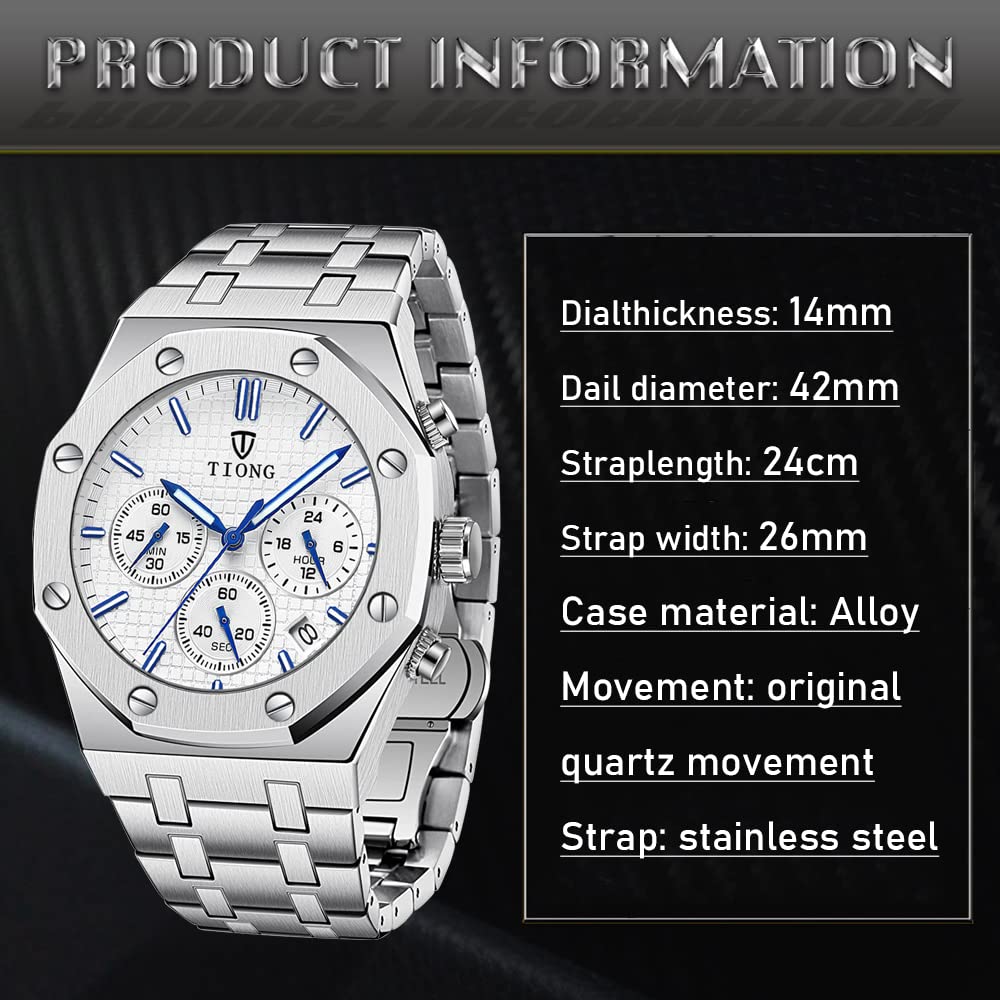★Multifunction Design★: Three multifunction sub-dials support stopwatch and date calendar,Japanese quartz movement and battery provide accurate time keeping.The watch can be used for more than 1-3 years.