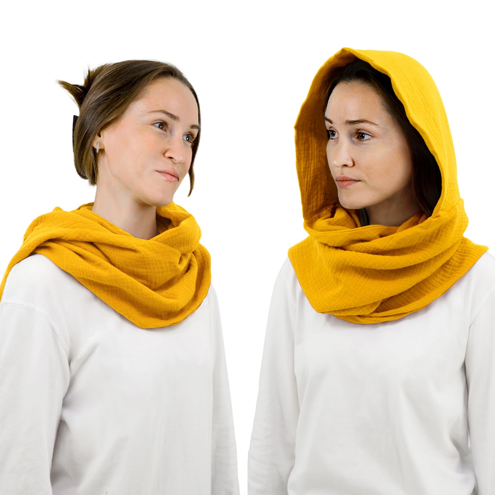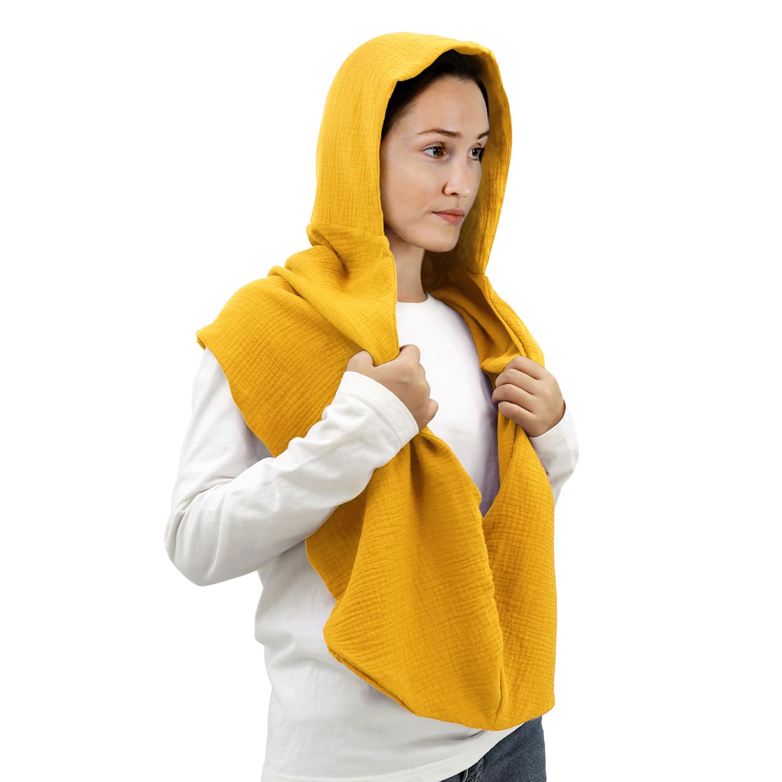 Upgrade Your Wardrobe: Our hooded scarf is a must-have for any season, offering endless style and warmth. It's a triple threat: a head cover, scarf, and wrap in one.