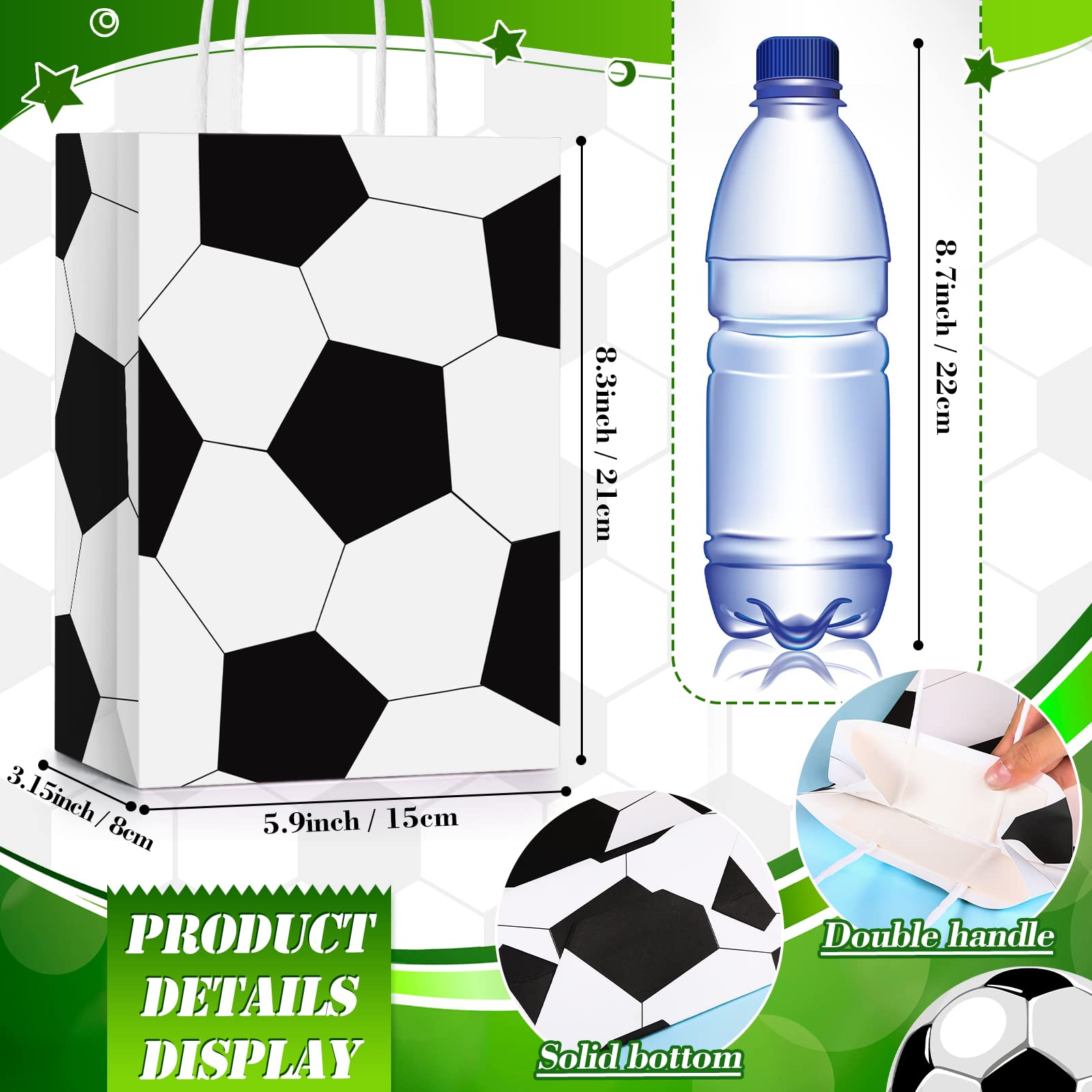 Reliable Material: the football sports party supplies bags are made of quality paper, lightweight but sturdy, safe and reliable, durable and not easy to break, not easy to fall off, they are strong and sturdy enough to hold some candies, snacks, toys or other small gift, can be applied for a long time