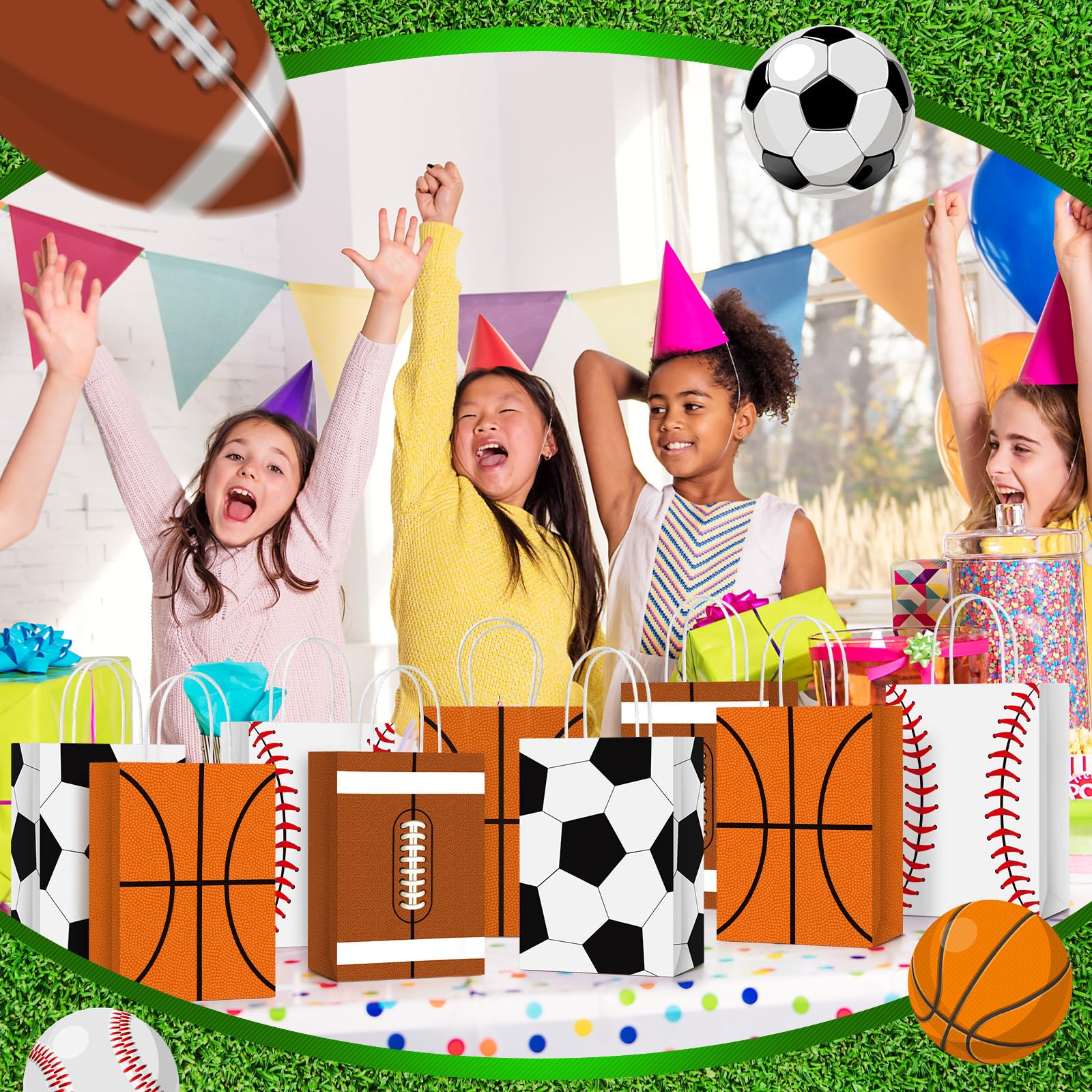 Package Includes: you will get 24 pieces of football gift bags with handles, designed in 4 styles, printed with many kinds of balls, sufficient quantity to meet your daily usage, you can also share them with family or friends
