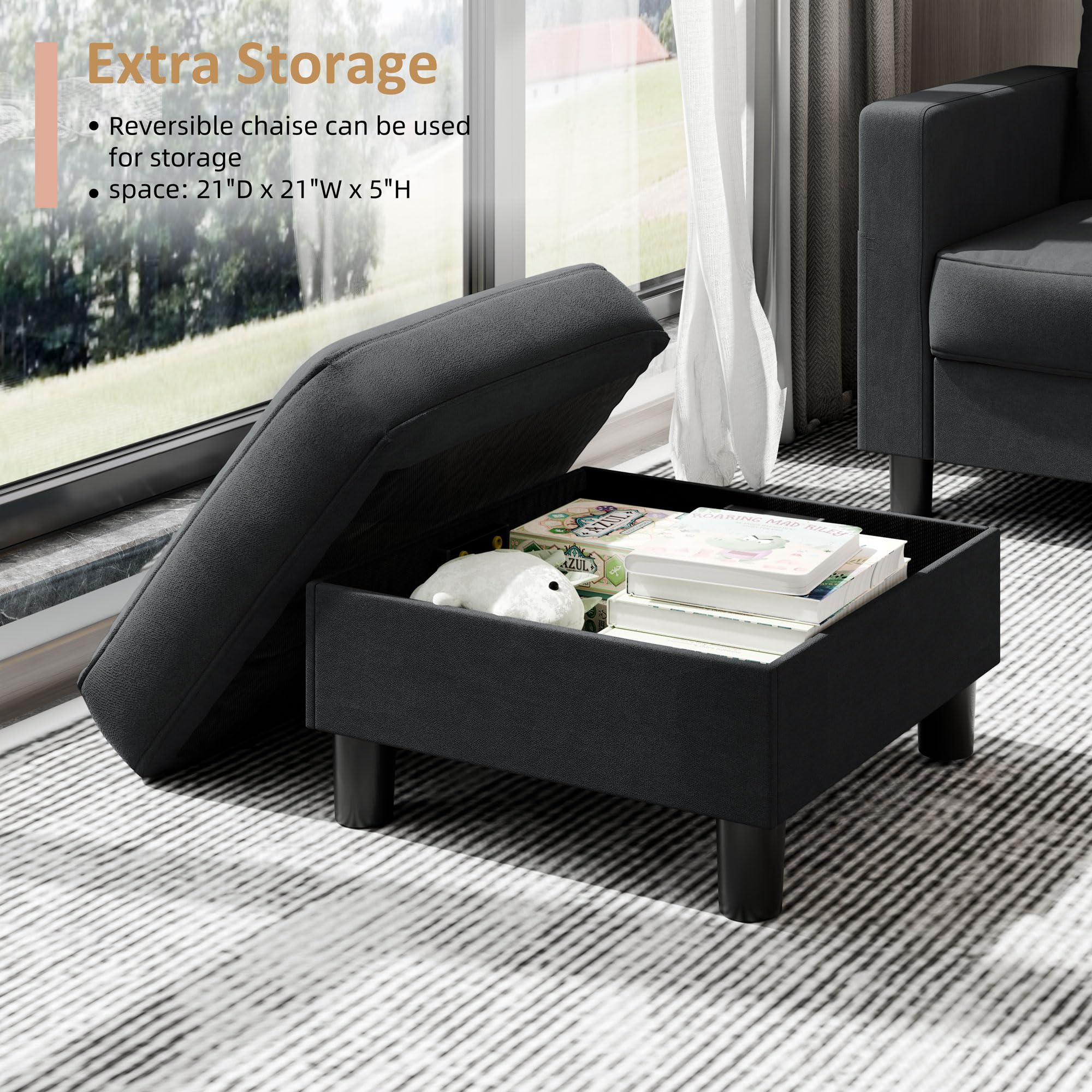 Multi-functional Storage: The sofa incorporates practical storage features, with the ottoman's lid opening to reveal ample storage space for blankets, toys, or other items. Additionally, a magazine rack is conveniently located on the armrest side, providing easy access to reading materials and keeping your living space organized.