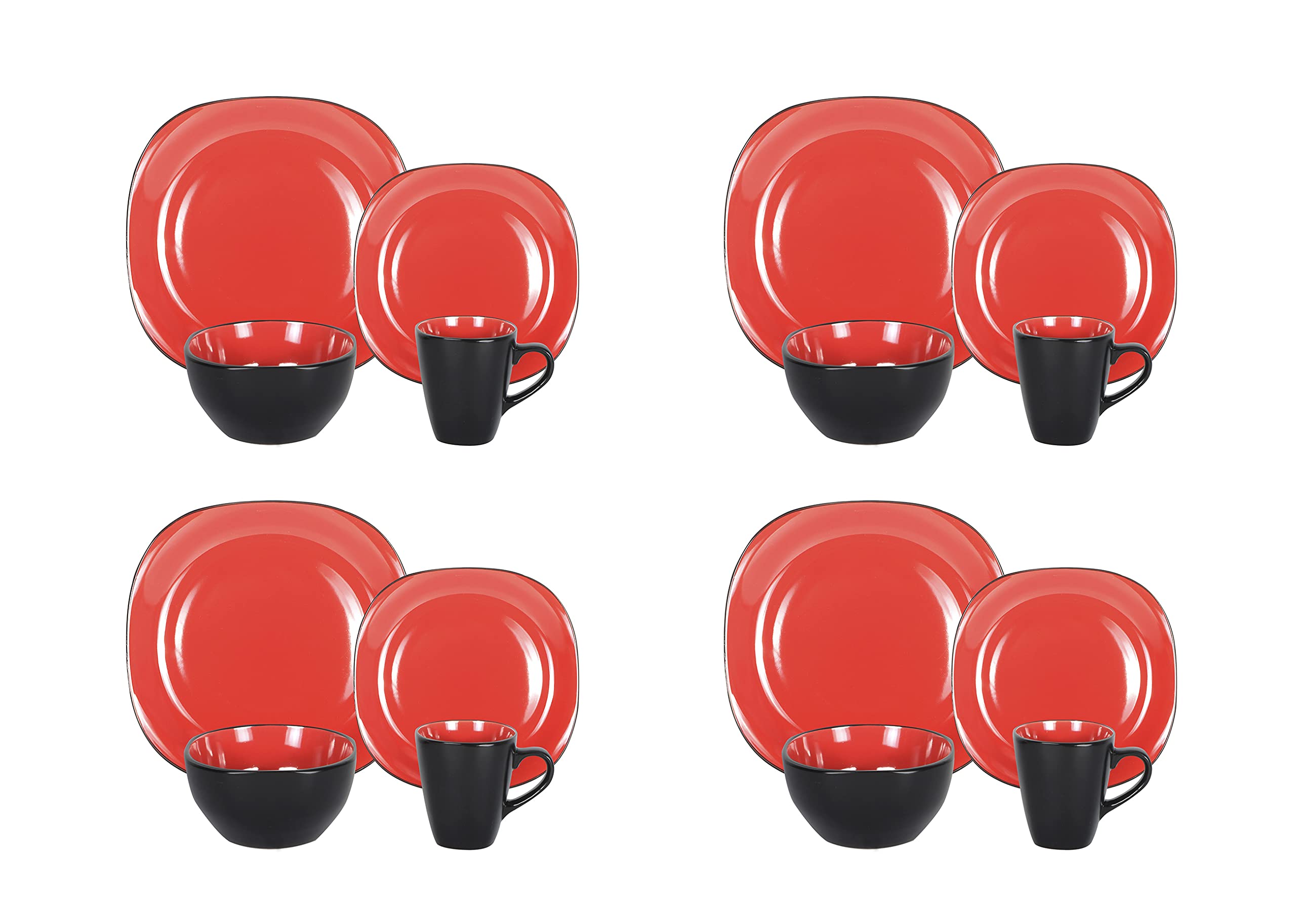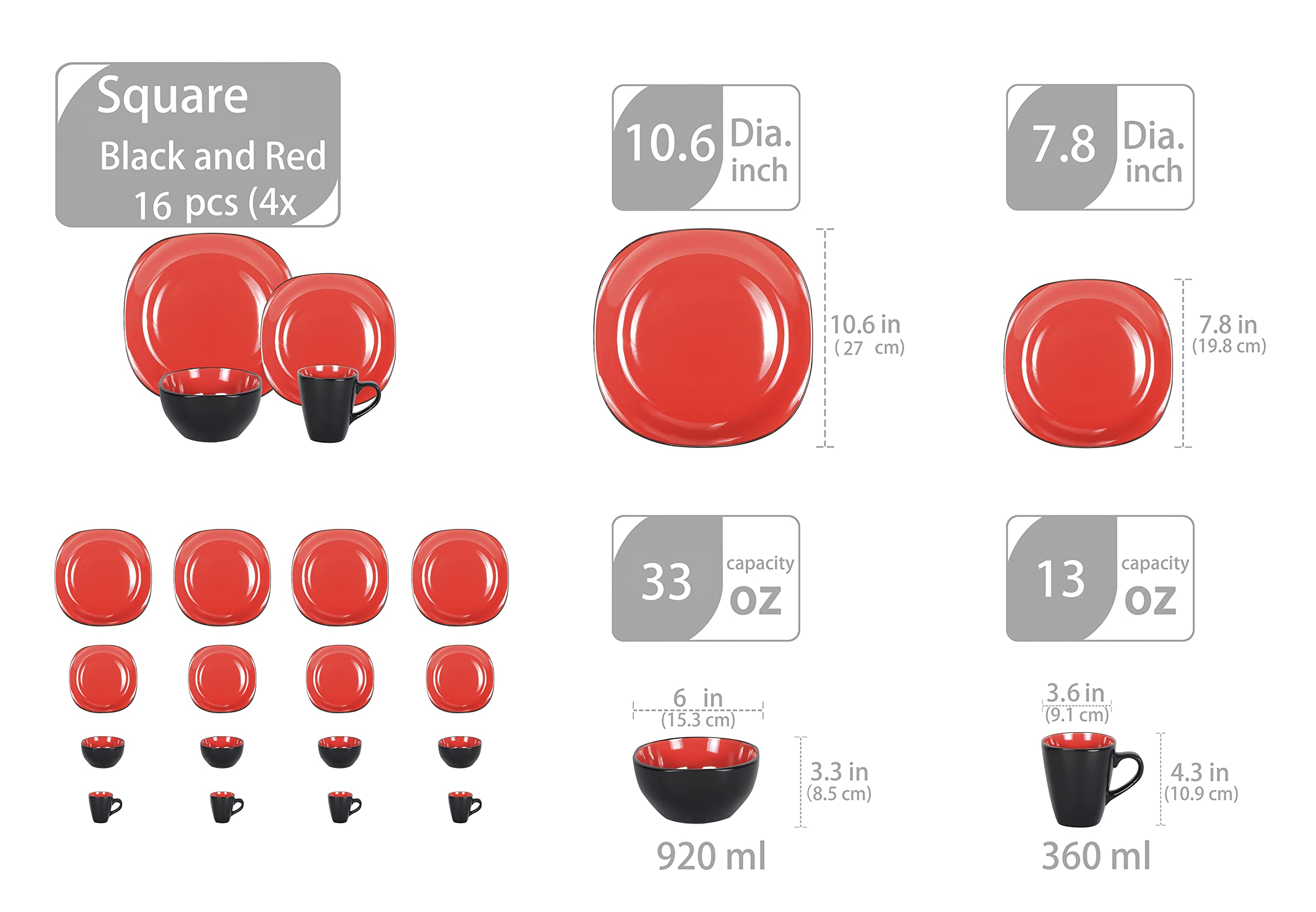 Service for 4: 16pc Square Dinnerware Set including 4 of Each: Dinner Plate Square 10.6" x 10.6", Salad Plate Square 7.8" x 7.8", Soup Bowl Square 6" x 6"", Mug Square 13oz