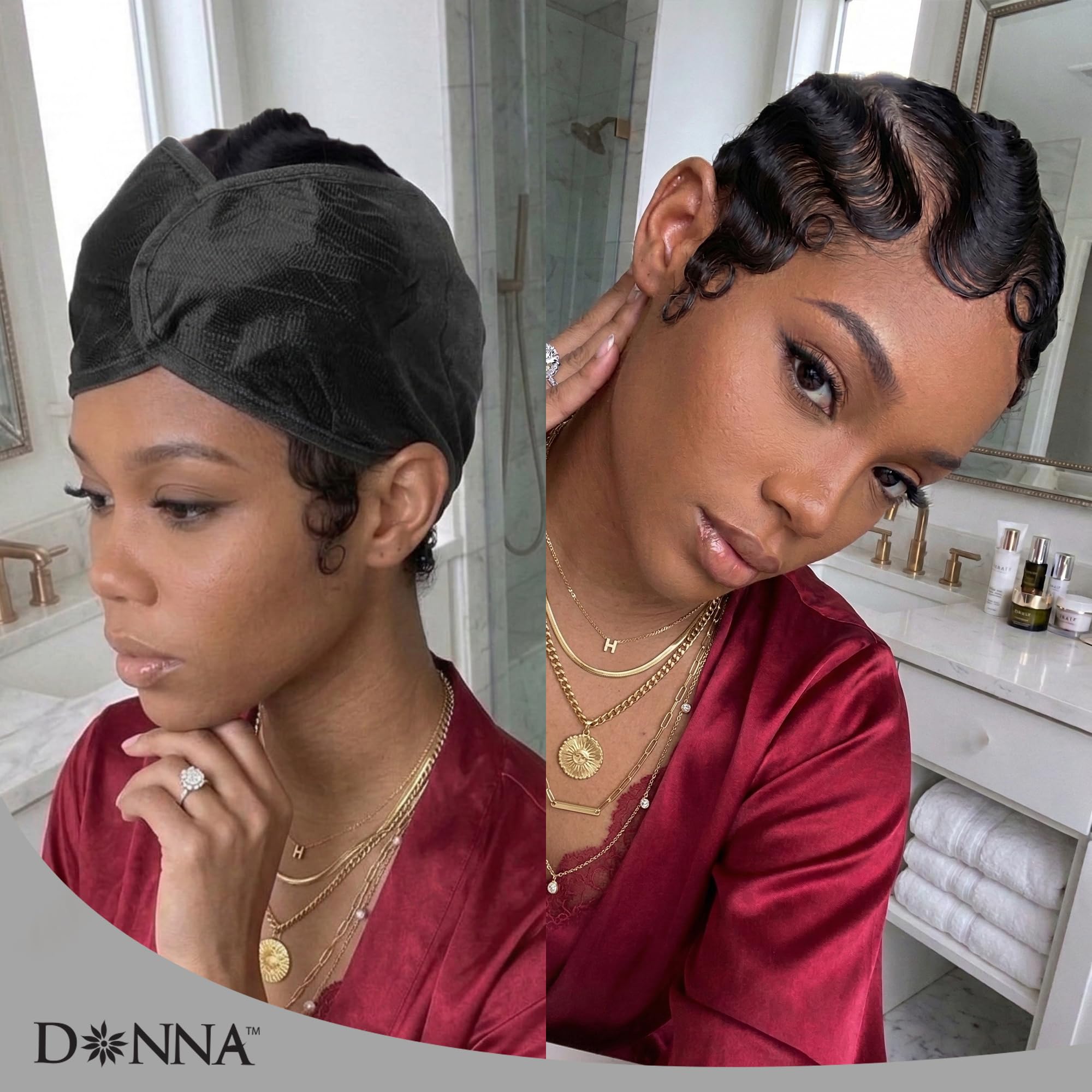 Short hair that is colored, bleached, or permed is extra vulnerable to moisture loss. Our satin wrap locks in hydration, prevents dryness, and protects your bedding from hair products. It is an essential hair care tool for anyone dedicated to keeping their pixie texture healthy and vibrant.