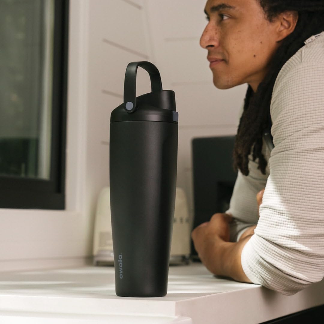 Designed for living life to the fullest, the Owala FreeSip Sway is like our original FreeSip—with even more travel-friendly features. In addition to our patented 2-in-1 FreeSip spout (you know, the one with the built-in straw and open swig option), this 40oz stainless steel water bottle holds plenty of water without being oversized. The sturdy bucket handle makes it easy to grab and go—not to mention comfy to hold. The tapered shape fits pretty much anywhere you’d stash a bottle, including most cupholders—whether it’s your car or your spin bike. The triple-layer insulation keeps drinks cold for up to 24 hours, and the sweat-proof exterior means no slippery hands or water rings.The wide-mouth opening makes cleaning easy and adding ice even easier. Plus, it’s made with BPA-free, durable materials. Sway is the ultimate hydration companion that goes with the flow of your day. It’s the ultimate gift for anyone who needs to up their hydration game. (Yourself included.).