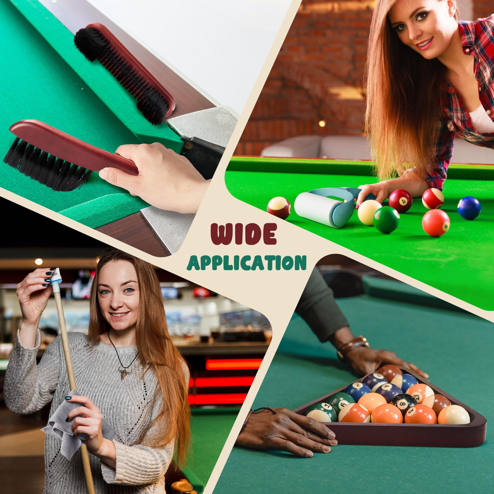 Easy Maintenance with Multiple Functionality: give your pool table and cues the care they deserve with our pool table brush, polishing cloth, and pool table felt cleaner; The brush allows you to clean the table's corners with the soft bristle easily made of nylon; The gray polishing cloth helps maintain the shine of your cues, and the lint roller keeps your felt clean and dust free; Our billiard accessories are designed to maximize your pool game experience