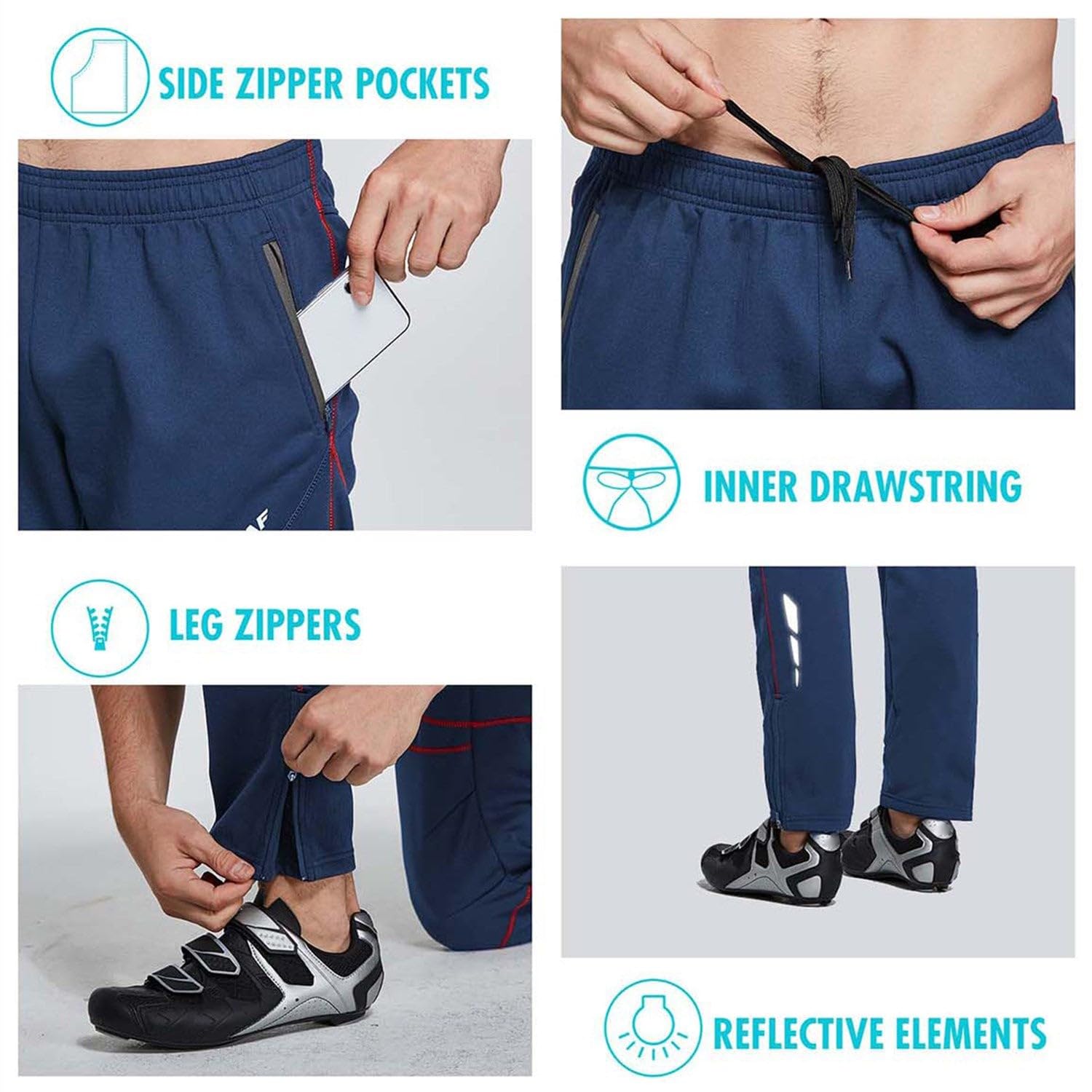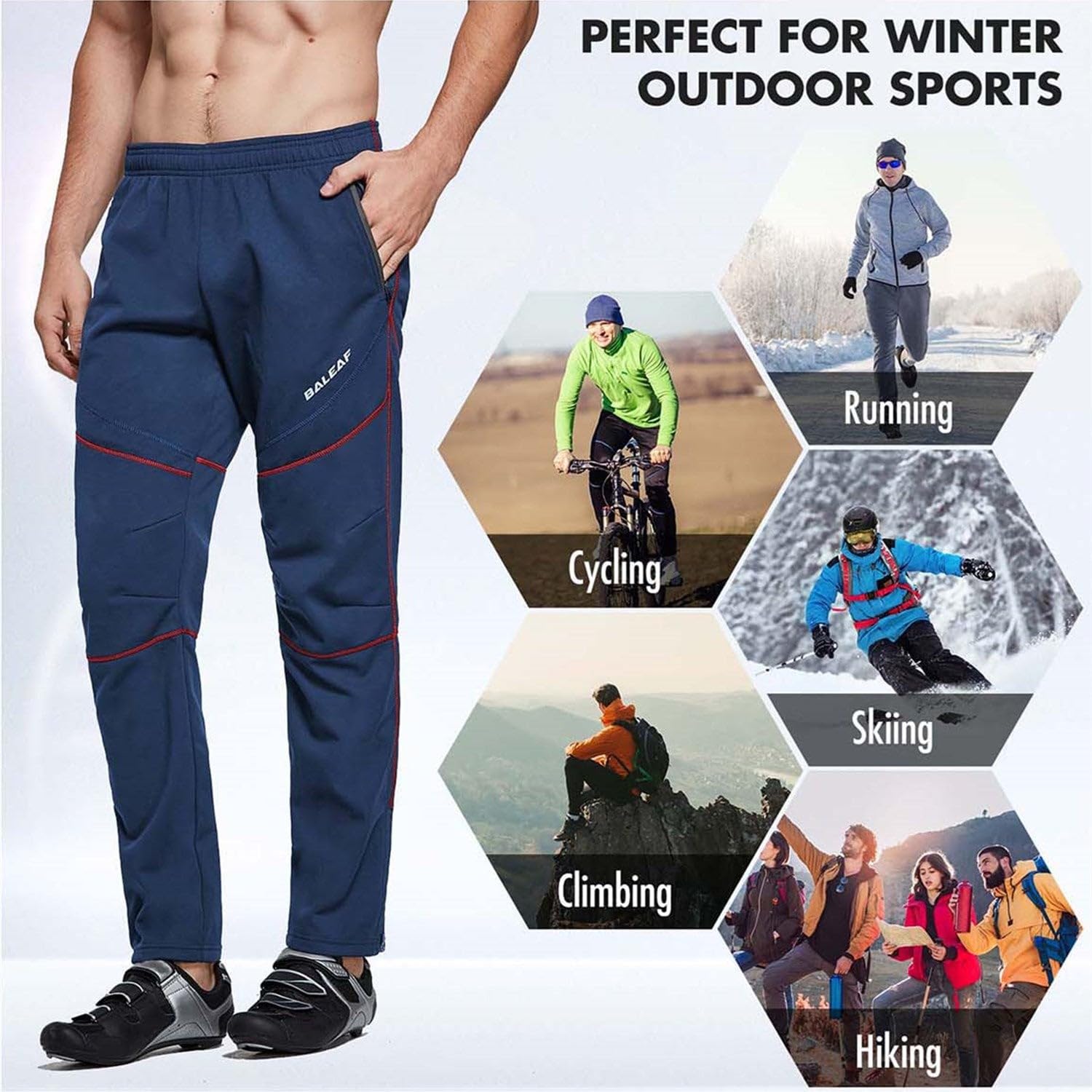 Multiple Uses: The area around the knees is stitched specially to be more flexible. Reflective elements for low-light visibility. Perfect for cycling, hiking, climbing, running, skiing and other winter outdoor activities.