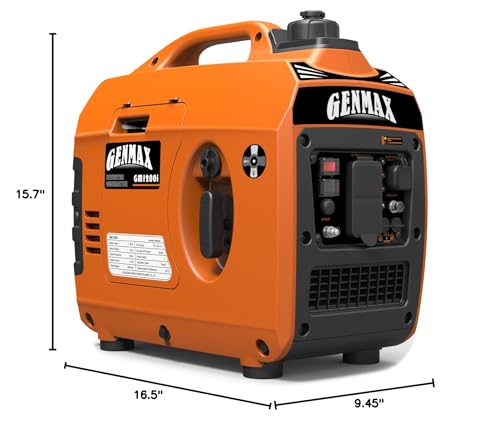 【Powerful Engine And Safe For Sensitive Electronics 】The GENMAX 1200 Starting Watts Inverter Generator is powered by a 57cc 4- stroke OHV gas engine,with inverter technology produce 1200 Starting Watts/ 1000 Running Watts clean power (less than 3% THD), confidently connect your sensitive electronics such as TV, lights, fans, small power tools and more on camping trips, etc.