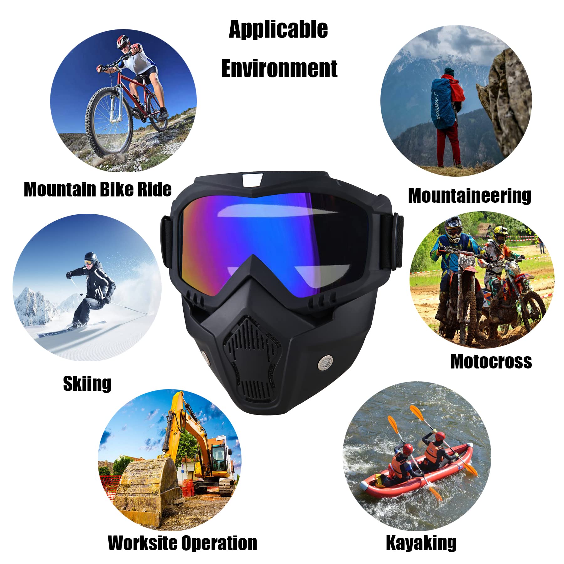 Removable goggle mask :Detachable masks and goggles are used separately to match your other helmets and masks.