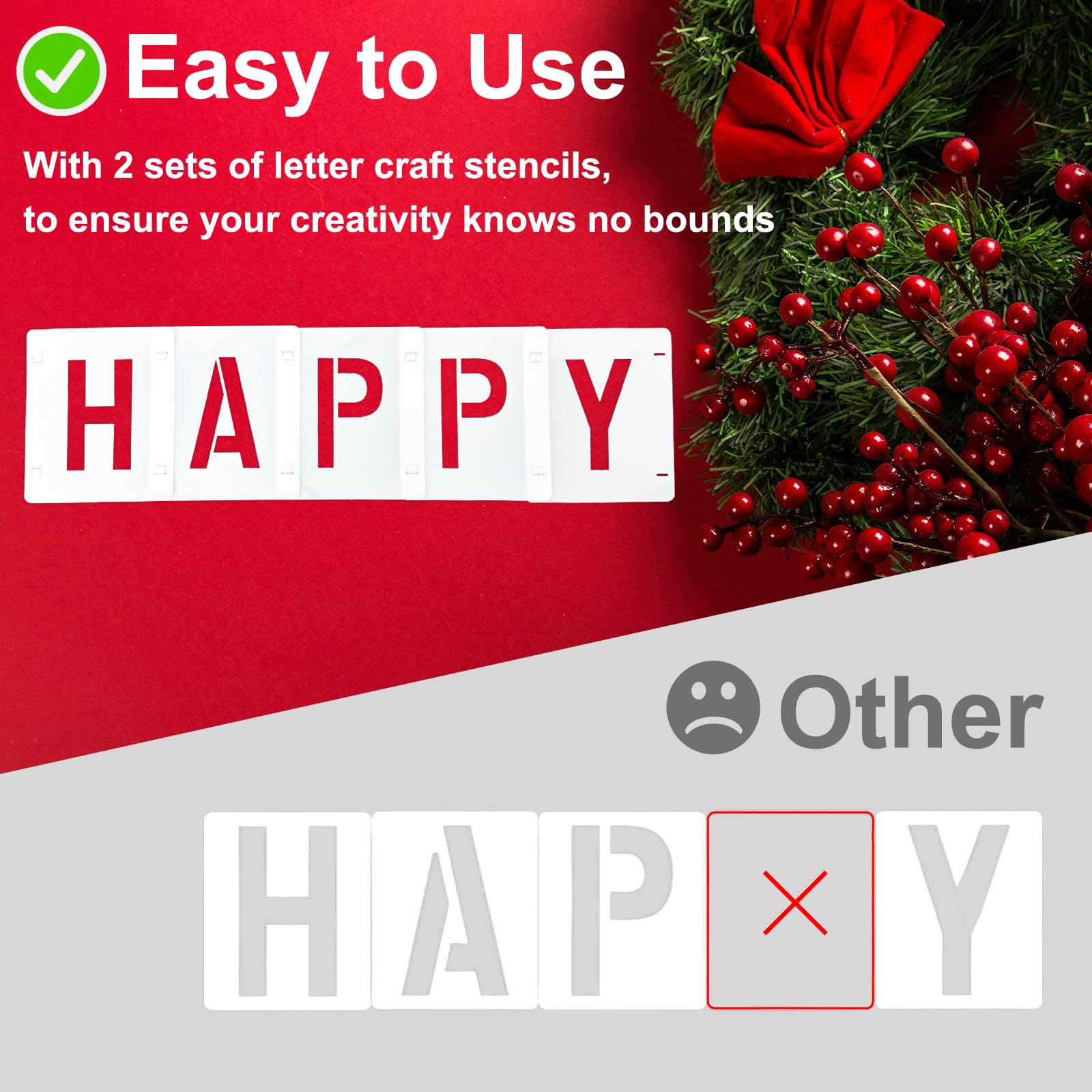 【Package Contents】You will receive 72 reusable painting stencils, 30% more than similar market products! Includes 2 sets of uppercase letters (A–Z, 26 pieces each) and 2 sets of number stencils (0–9). This rich combination enables you to easily create various DIY art projects. With 2 sets of letter and number craft stencils, to ensure your creativity knows no bounds.