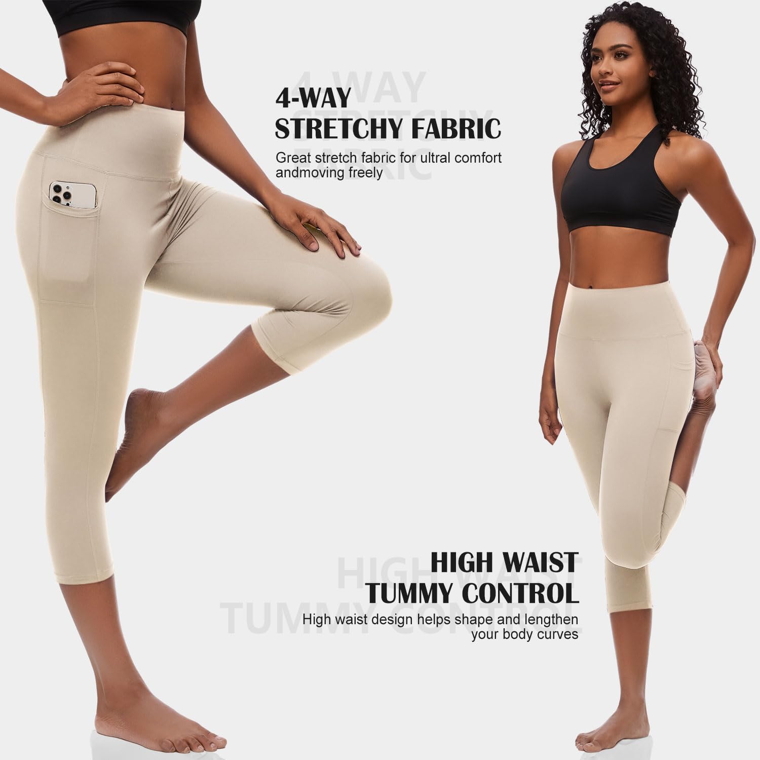 ✅【HIGH WAIST TUMMY CONTROL】:Our high waisted capri leggings are an unbelievable tummy tamer. The soft fabric offers contouring and gentle compression that hugs your abdomen, and smooths all over. The high waisted style elongates the legs, and slims the waist, creating the silhouette of your dreams.
