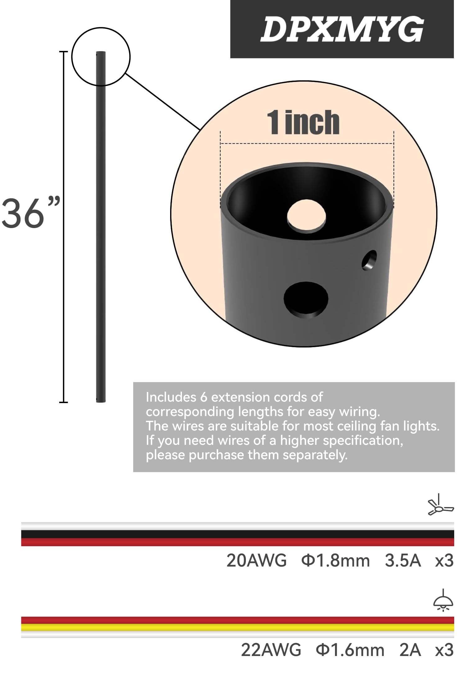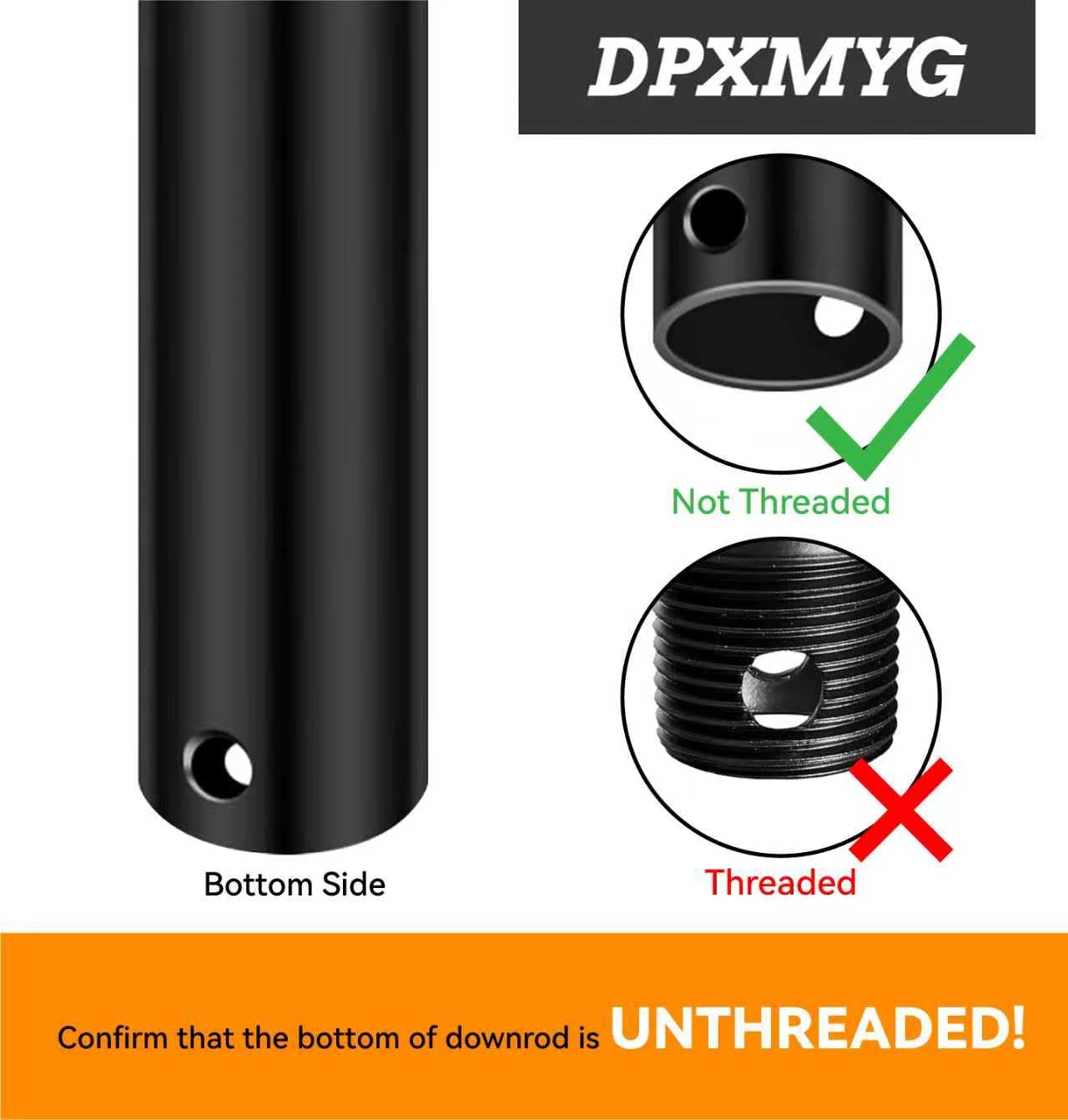Ceiling Fan Extension Downrod: The DPXMYG downrod fits most ceiling fans on Amazon (Note: Our downrods are not threaded, so if the original downrod on your fan is threaded, ours does not fit). You can choose the downrod that fits your length requirement according to the height of your room.
