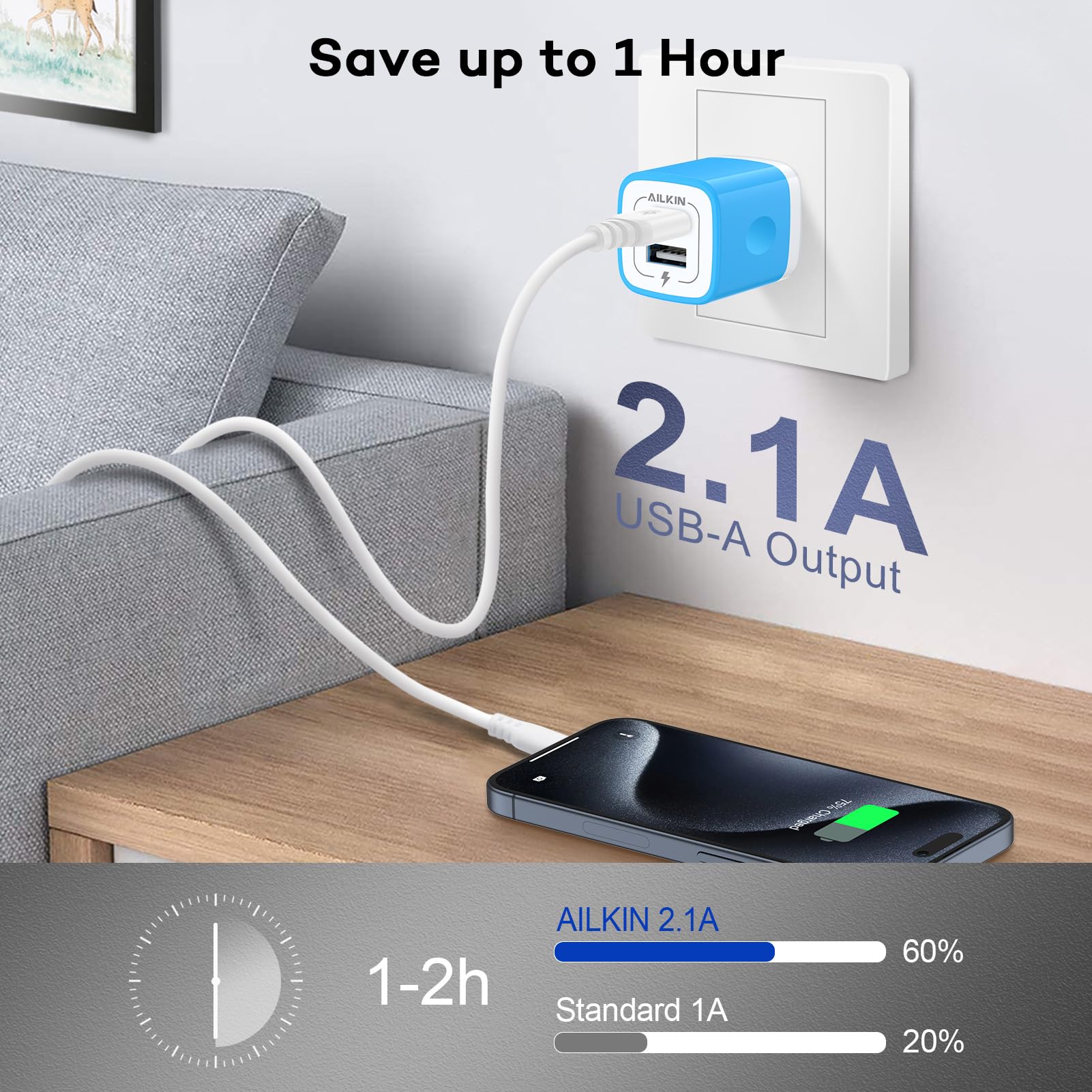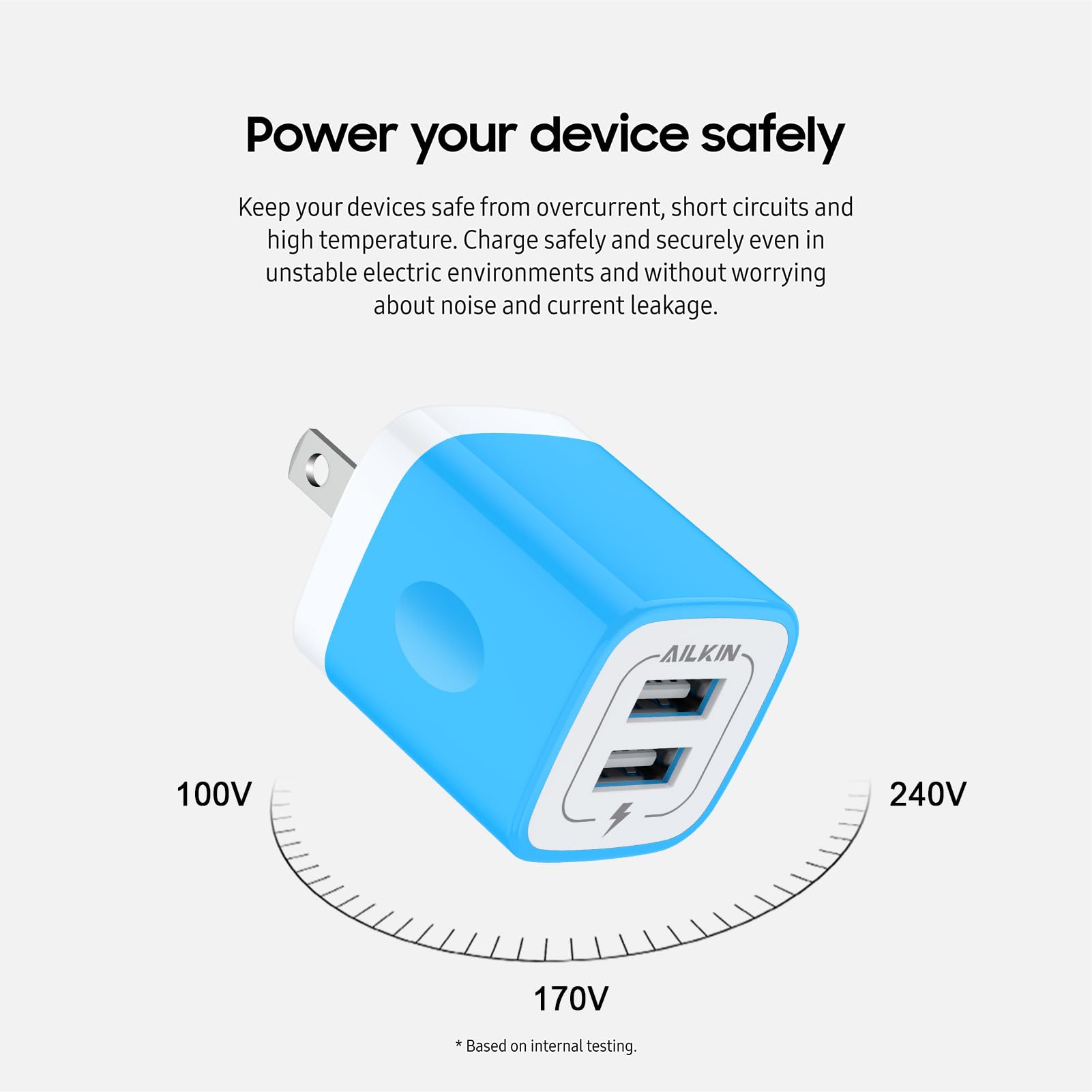 Safety assurance: AILKIN'S charger block has a protection system against overcharging, over-currents, and overheating. The charger will automatically stop charging when power is full, which can maximumly protect your device.