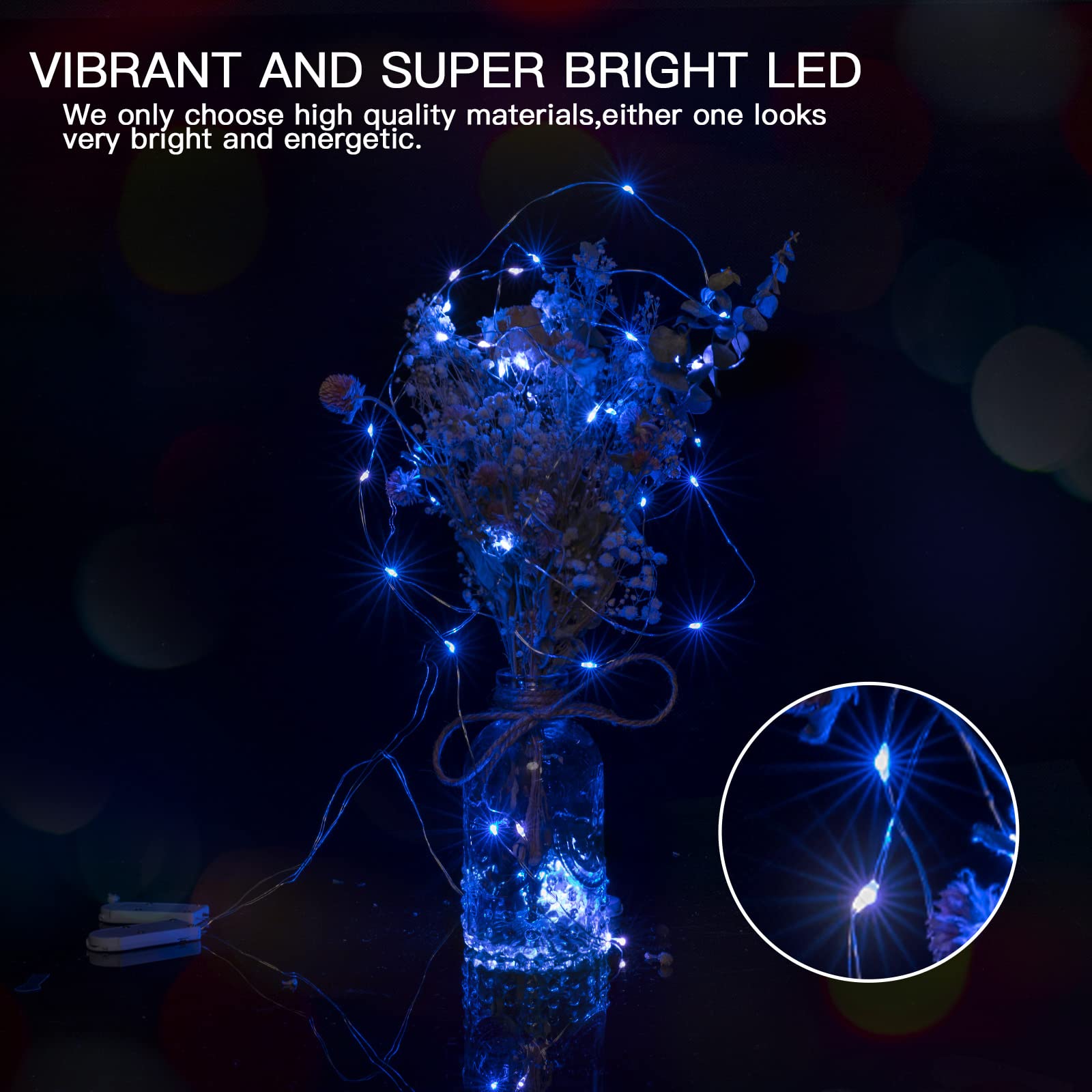 【 12 Pack Battery Operated LED Fairy Lights 】- Powered by 2 CR2032 batteries (included), the 7 feet micro fairy light with 20 upgraded energy-efficient LEDs is perfect for both everyday decorations as well as holiday decor. The thin copper wiring and small-sized LED bulbs will add a delicate and cozy touch to your personal space