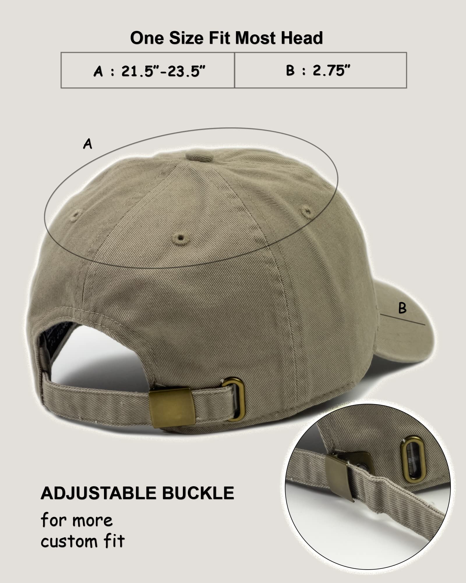 Adjustable Metal Buckle Back Closure : Great Fit for All Head Size. Hat Size Measurements : 21.5" - 23.5"