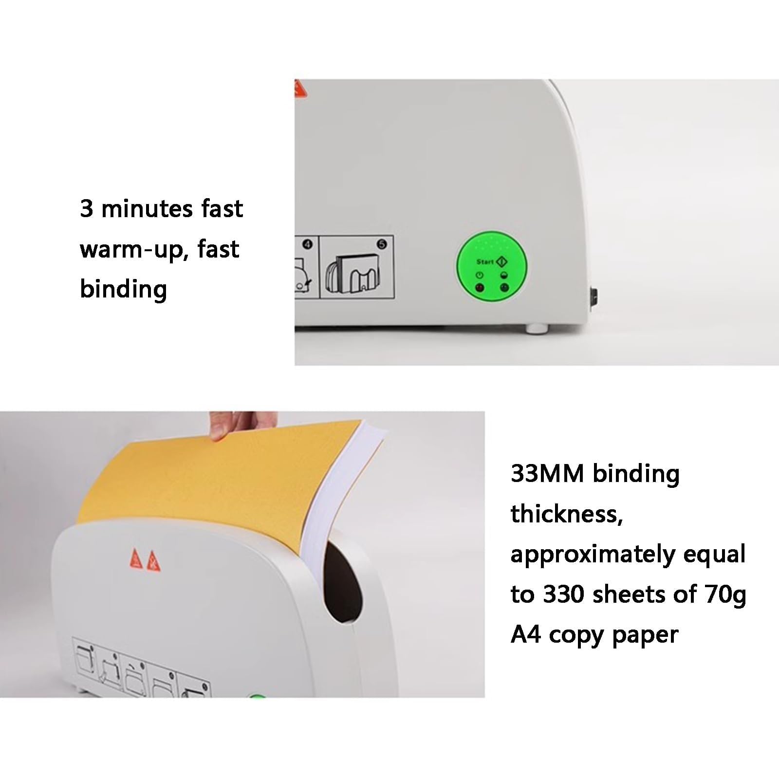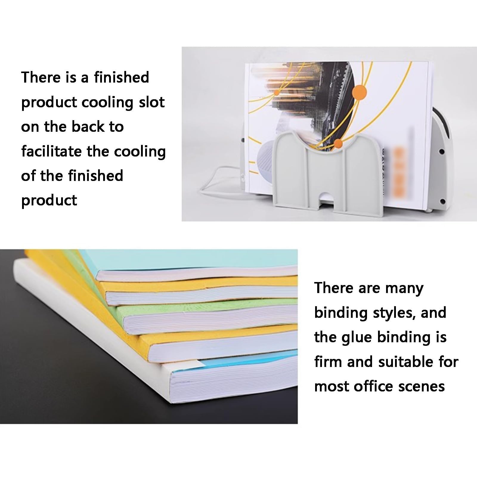 Experience the efficiency of our Hot Melt Binding Machine featuring advanced PTC-ceramic heating technology. Equipped with a built-in ceramic chip, this machine guarantees consistent temperature control during the entire binding process, resulting in superior binding outcomes. The intelligent constant temperature feature activates upon powering on, ensuring optimal and uniform heating. This not only enhances performance but also contributes to the stylish design of the machine. Specifications: Product Name: Hot Melt Binding Machine Material: ABS Binding Thickness: 33MM Preheating Time: 3 minutes Size: 370X95X240mm Equipment Power: 220V/50HZ/250W Weight: 0.84kg Package Includes: 1 Binder Machine