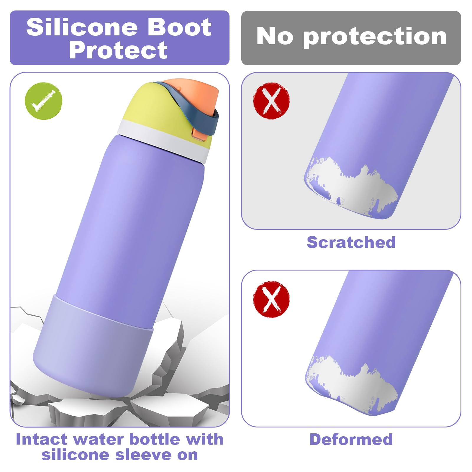 【Perfect Compatiblity】The silicone boot is suitable for Owala 40oz FreeSip, Twist, and Flip stainless steel water bottles. It is precisely made according to the size of the original cups, which perfectly fits the cup bottom and won't fall off easily.