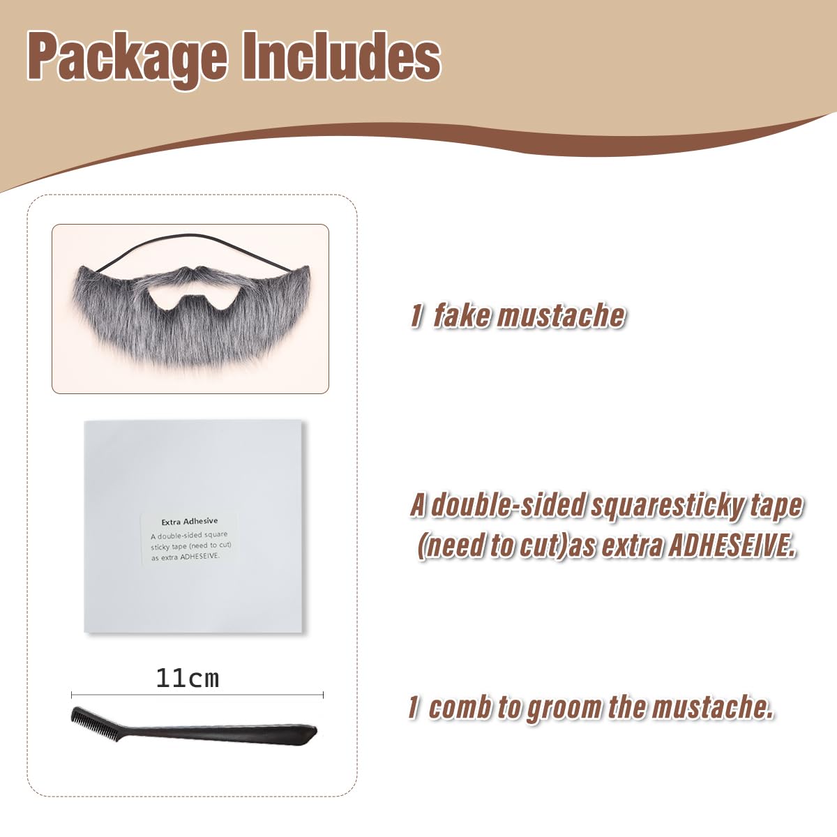 Package include: 1 pc beard + 1 pc double-sided beard tape + 1 small comb