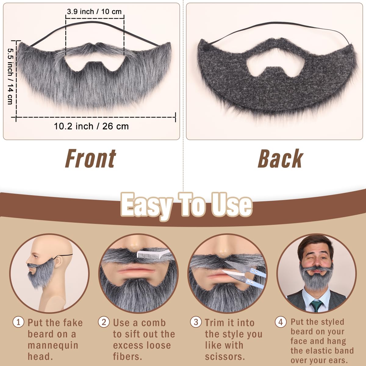 Customizable and Unique:Trim, style, and even dye the beard to create your own one-of-a-kind look. Express your creativity and stand out from the crowd.