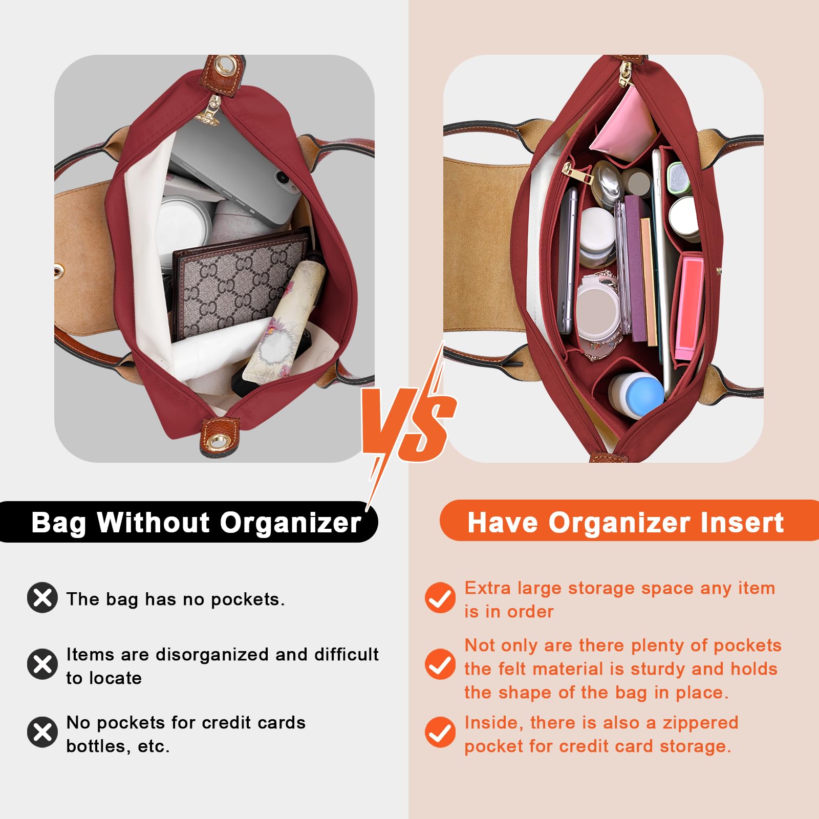 Organizer Same Shape as the Bag: An seperate Zipper Insert Which Helps Keep Your Valuable and Privacy Items Stored Well, And All Your Things Could Be Easy To Find. The Whole Tote Organizer is Also Sturdy Enough to Help Keep Your Bag In Proper Shape,IMPORTANT: This tote organizer is designed for Longchamp bags and does not include the bag, if you have a similar tote, please double check the size to ensure compatibility.