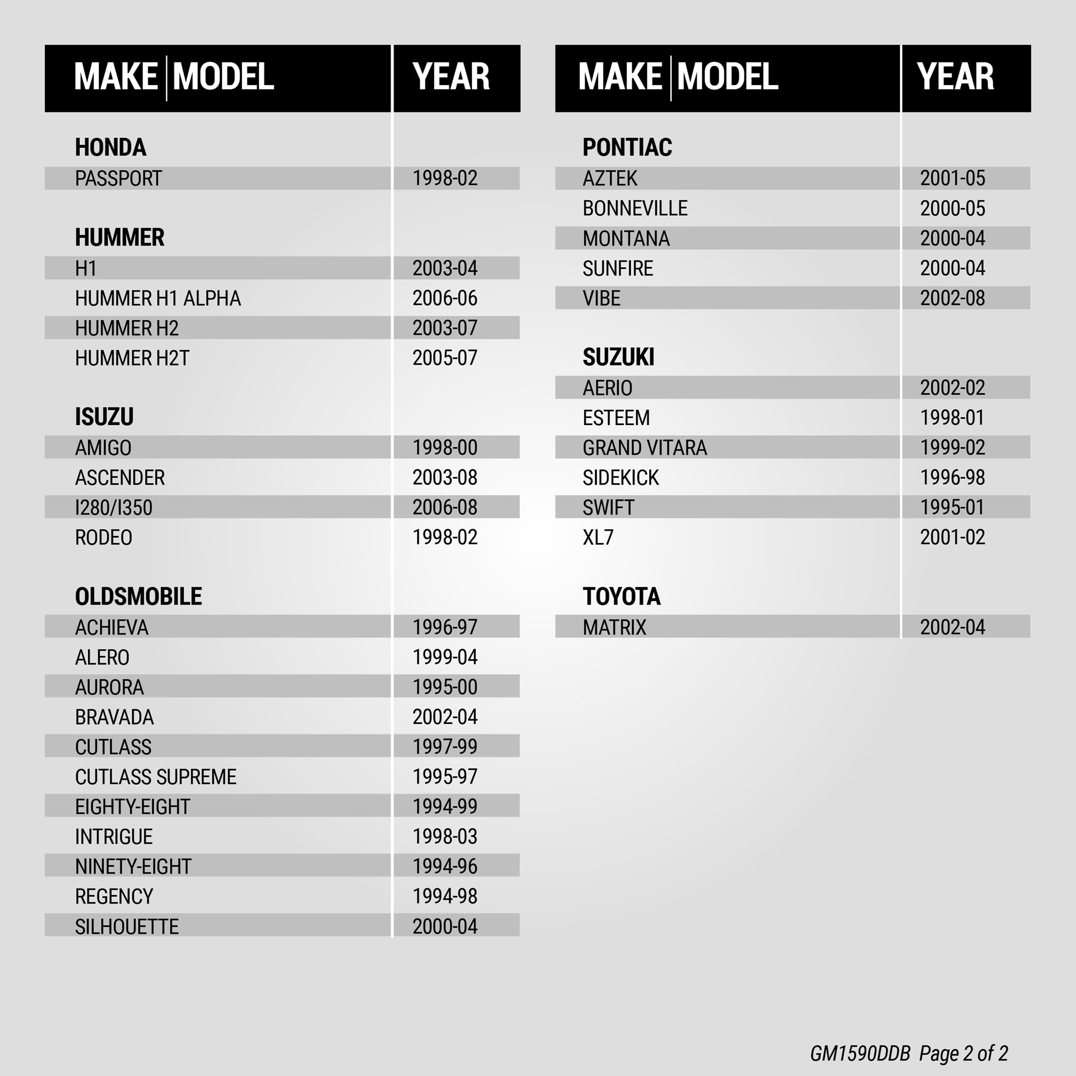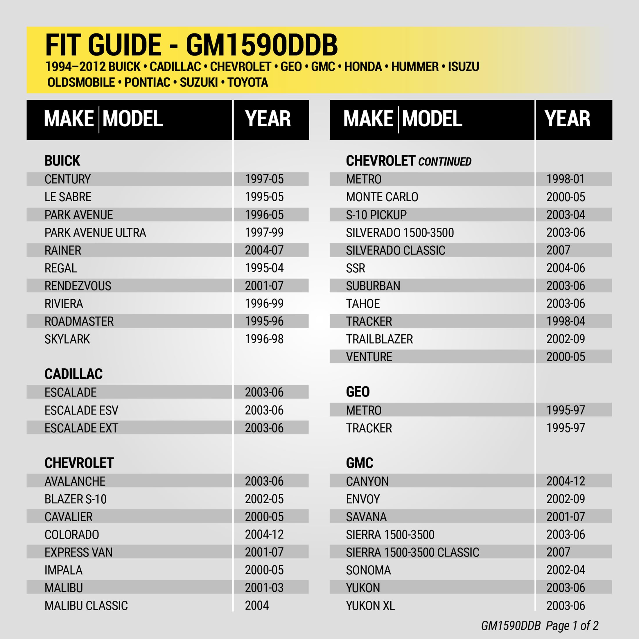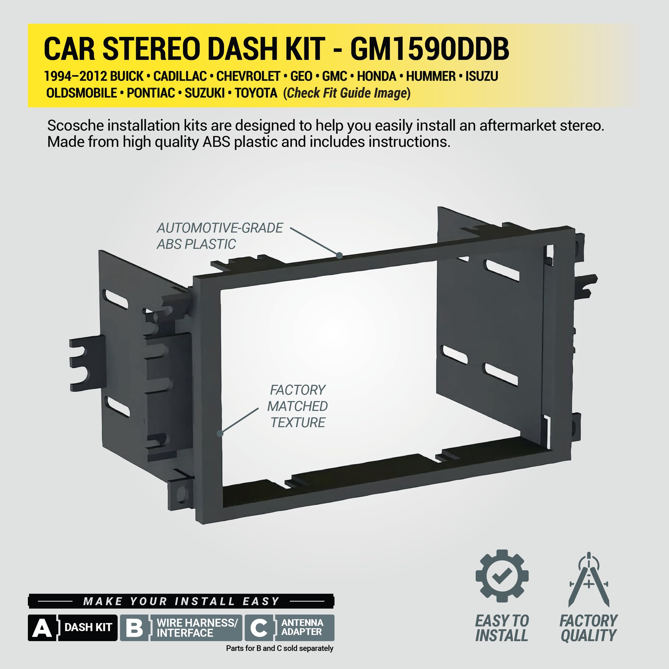 Perfect Fit - Designed specifically for Select 1994-2012 Buick, Cadillac, Chevrolet, Geo, GMC, Honda, Hummer, Isuzu, Oldsmobile, Pontiac, Suzuki and Toyota vehicles, the Scosche GM1590DDB dash kit ensures a seamless fit for your aftermarket car stereo