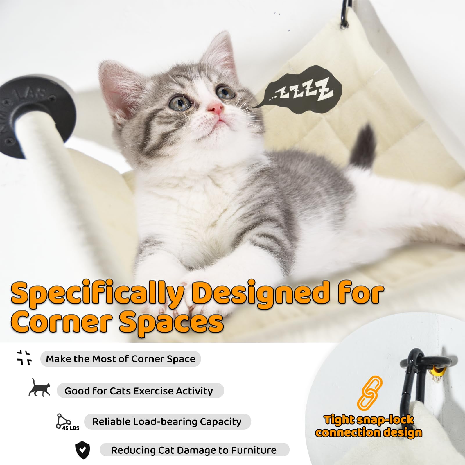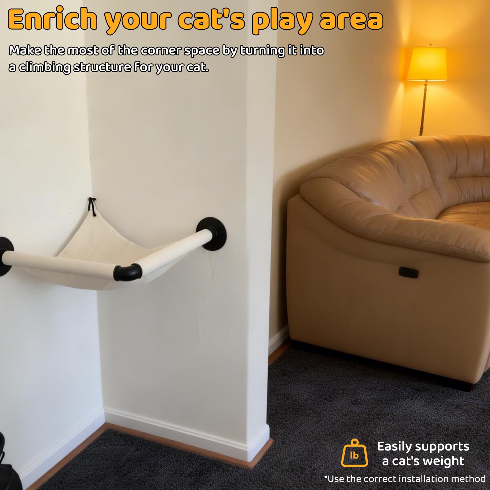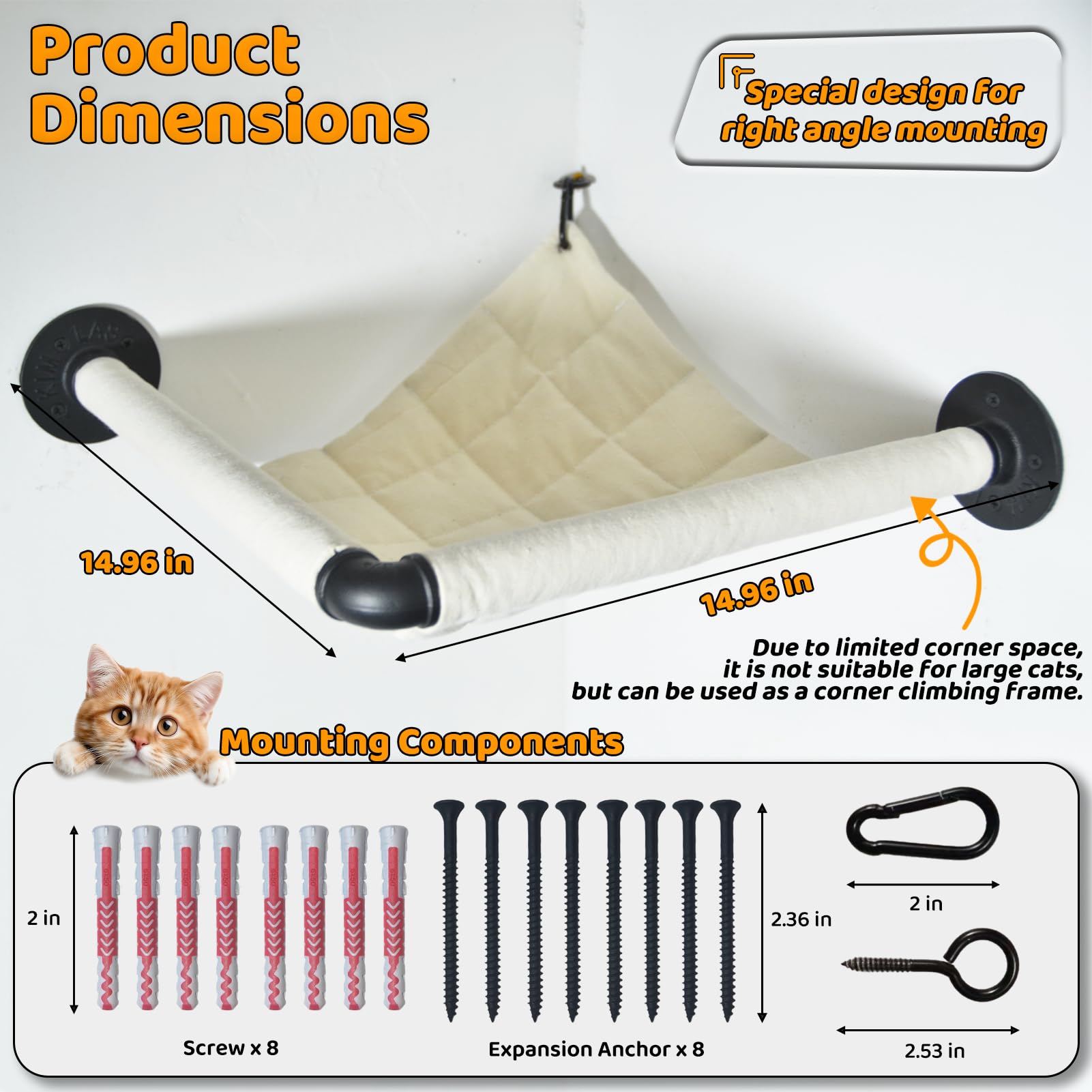 Product Content: You will receive a cat climbing frame and the necessary parts. Our cat hammock is sturdy, but due to limited corner space, it is not suitable for large cats to rest on. However, it can be used as a corner climbing frame