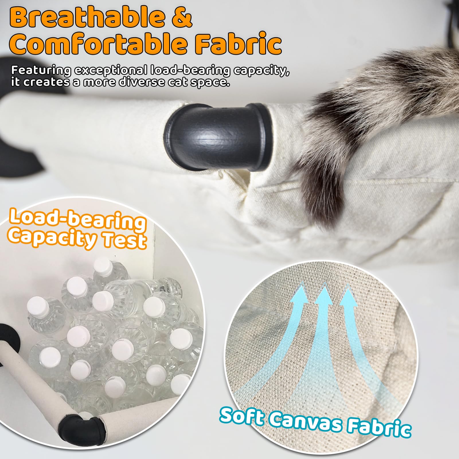 Solid and Sturdy Cat Climbing Shelves: Our solid cat wall frame is made with sturdy and durable metal brackets for added safety and stability of your cat bed. The cat hammock can hold up to 45 pounds, Cats can rest comfortably and safely in the hammock