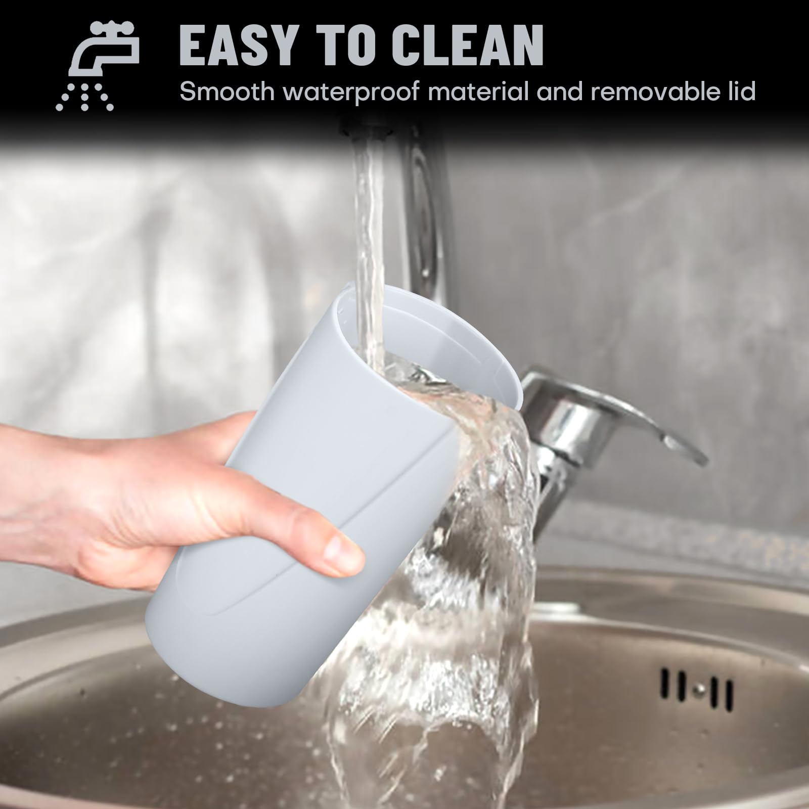 【Easy to Clean】 Simply remove the lid, rinse it and the body, and wipe them dry to keep your trash can looking fresh.