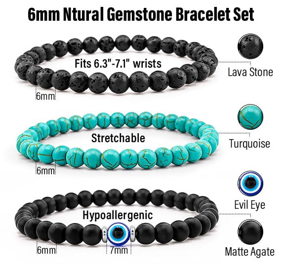 Perfect gift: The bead bracelet set is design with stylish tigers eye stone, suitable for stress relief, meditate, yoga, excellent gift choices for dad, best friend, son, roommate or classmate on anniversary. Also can be wear on Christmas, birthday, party, Valentine's Day and so on.